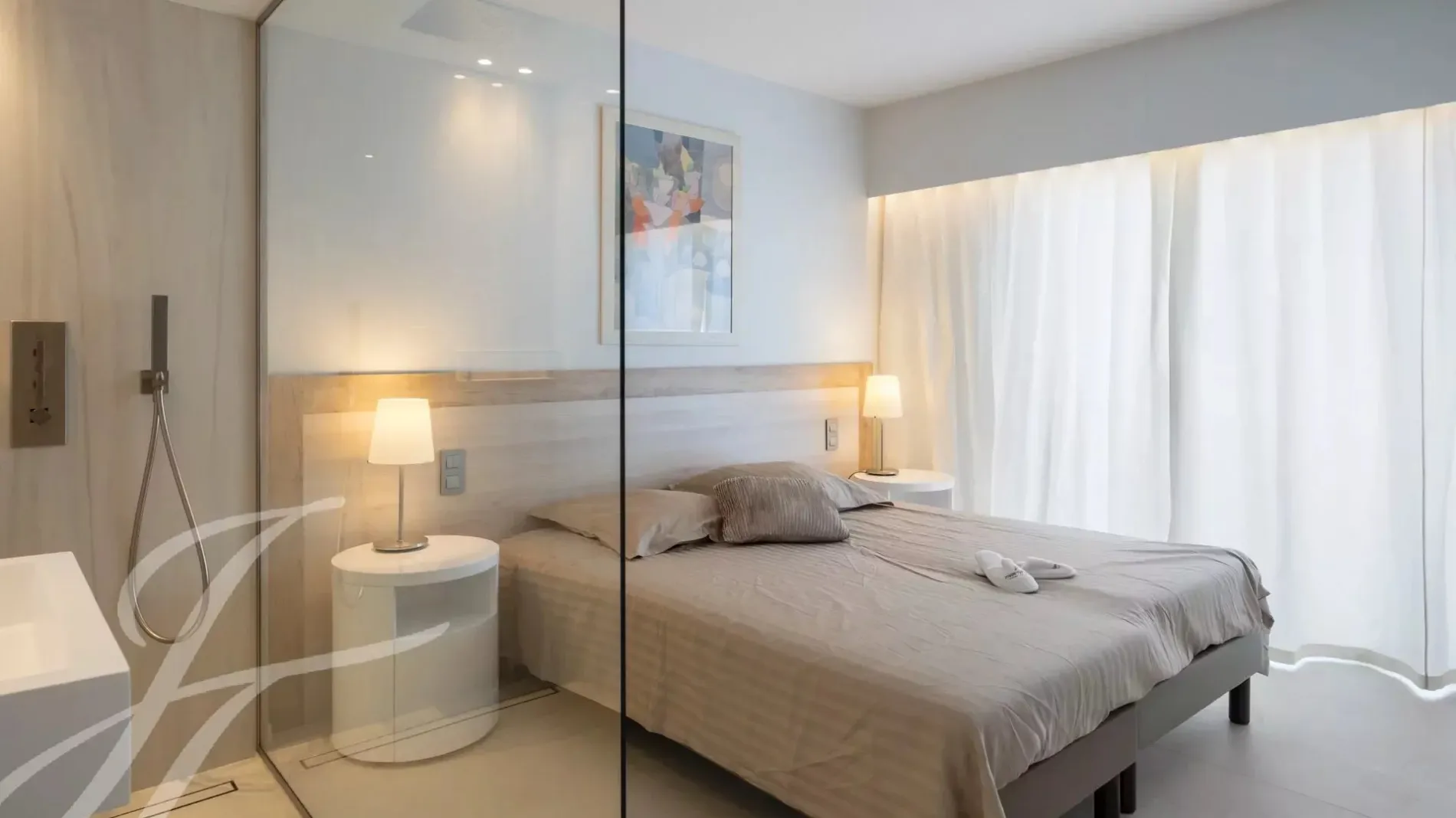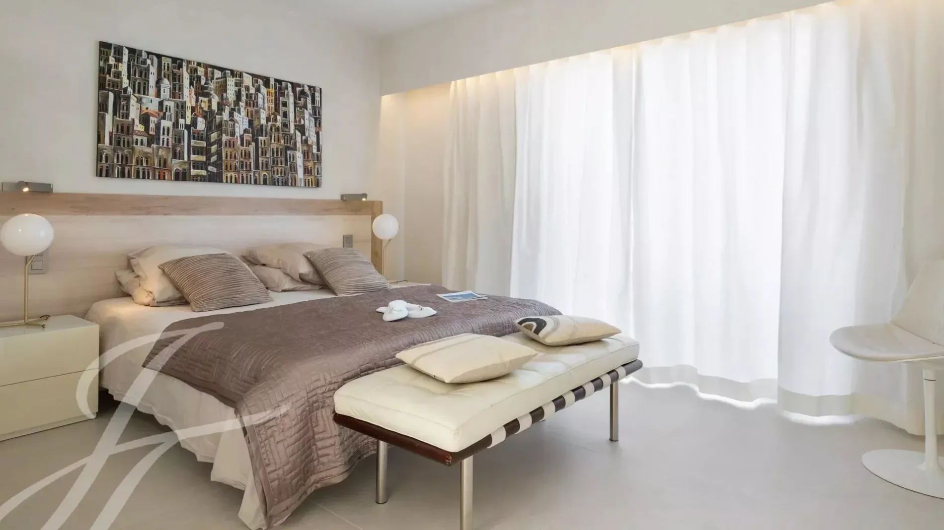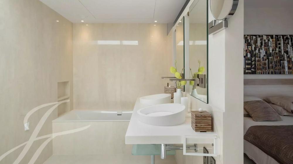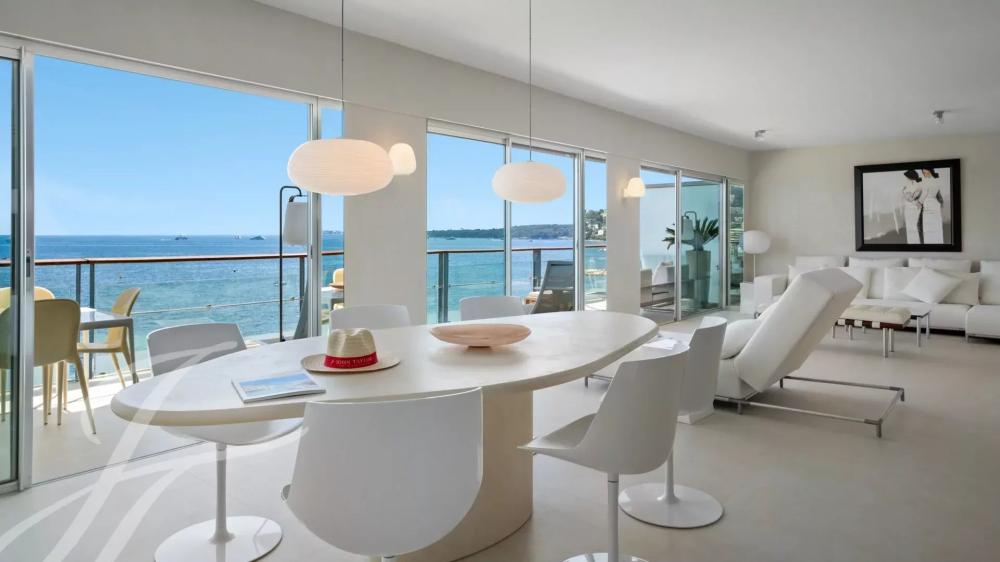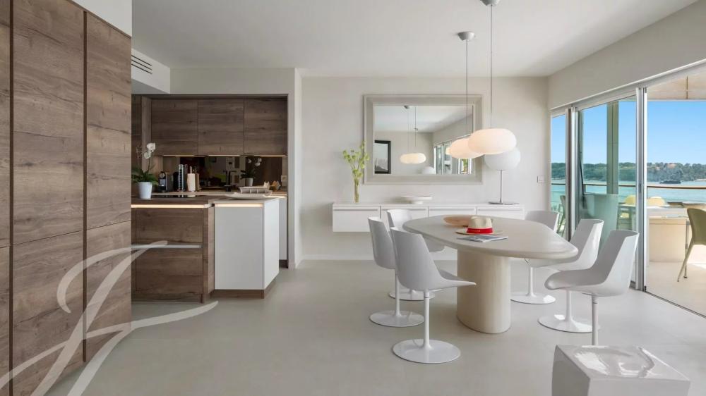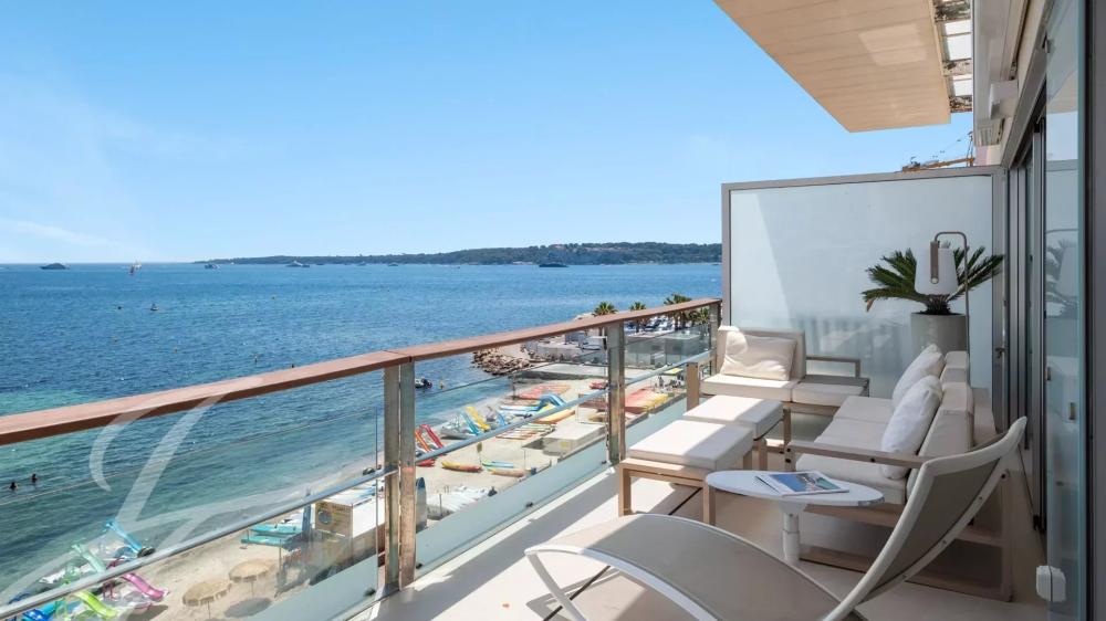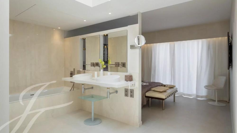 Attractive and top floor apartment in modern residence situated in the palm Beach area of Cannes, in front of the « Iles de Lerins » an Cap d'Antibes. Magnificent sea-view.