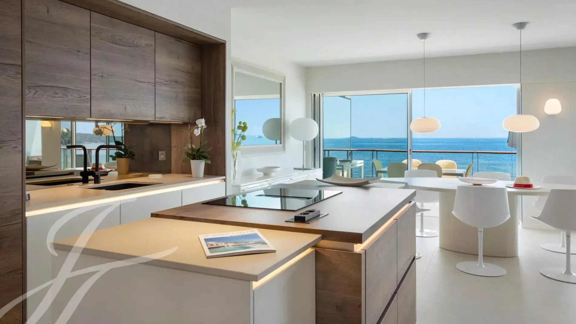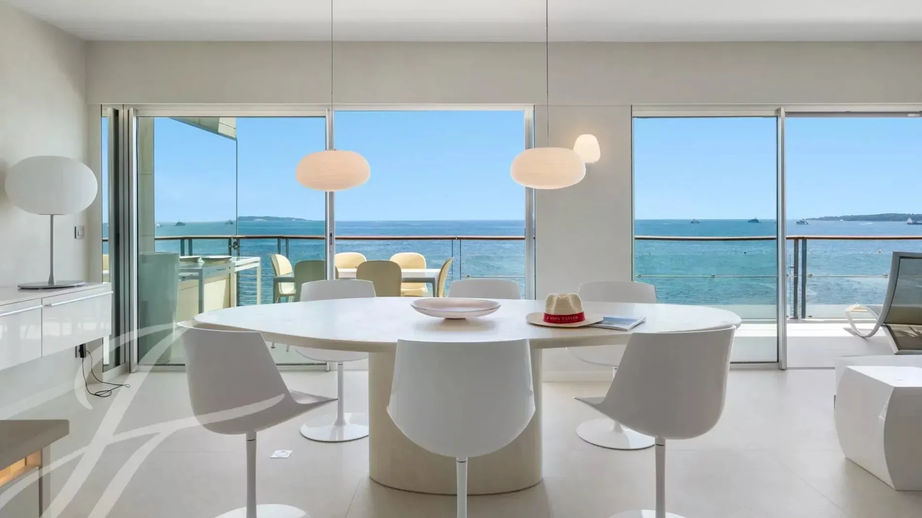 Large living-room / dining-room opening onto the terrace, sea-view