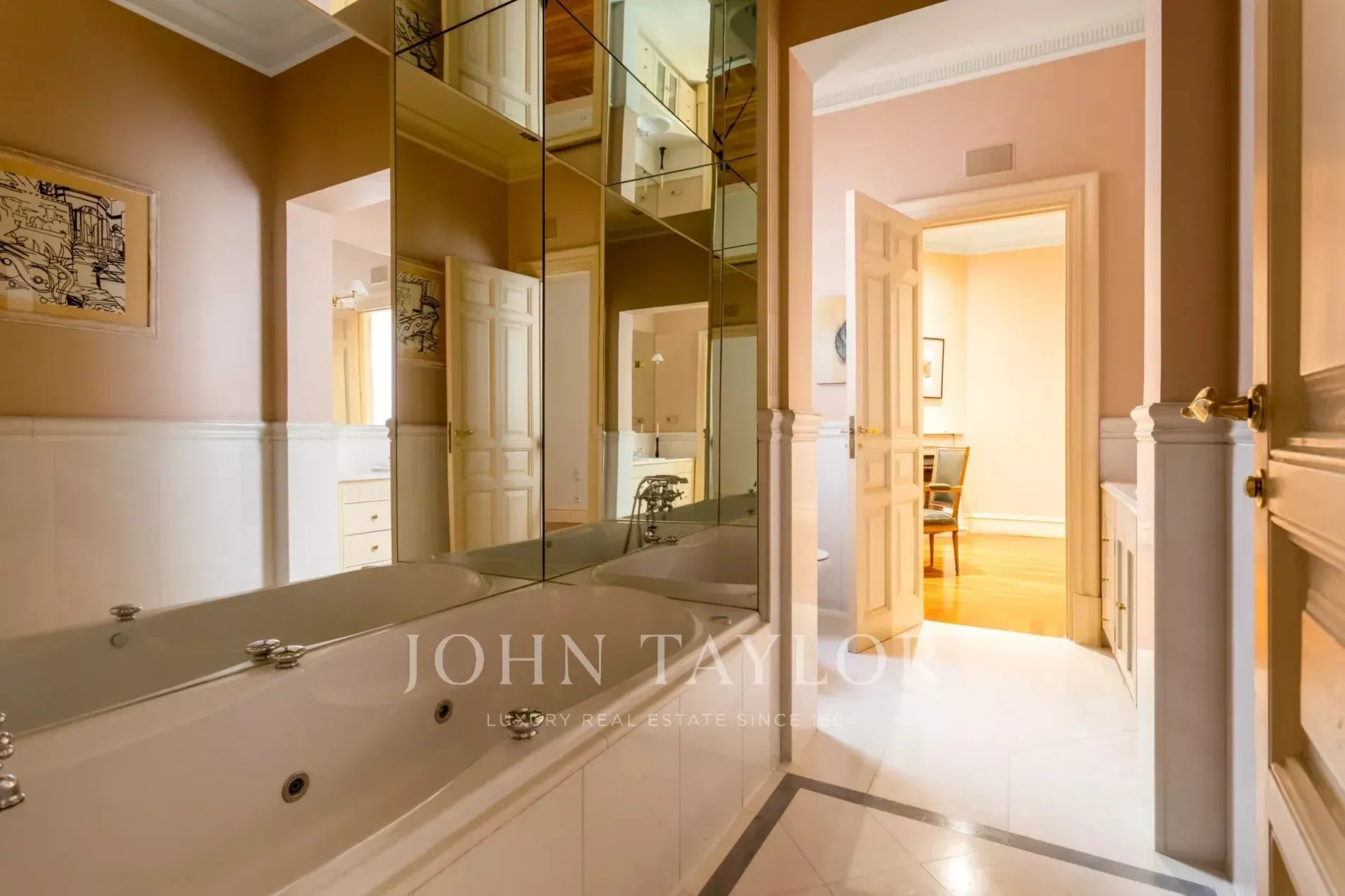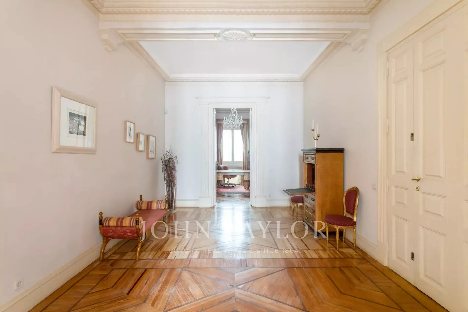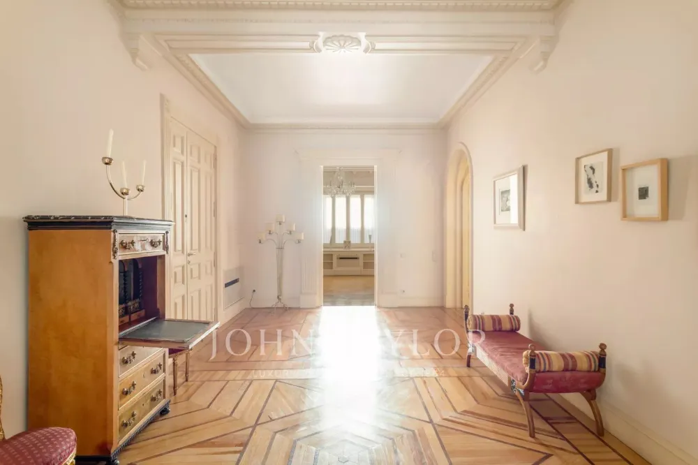 With high ceilings, two majestic living rooms and six bedrooms, the property breathes sophistication and serenity in every room. Its stately portal, of timeless elegance, gives way to an interior full of light, harmonious proportions and period architectural details that have been carefully preserved.