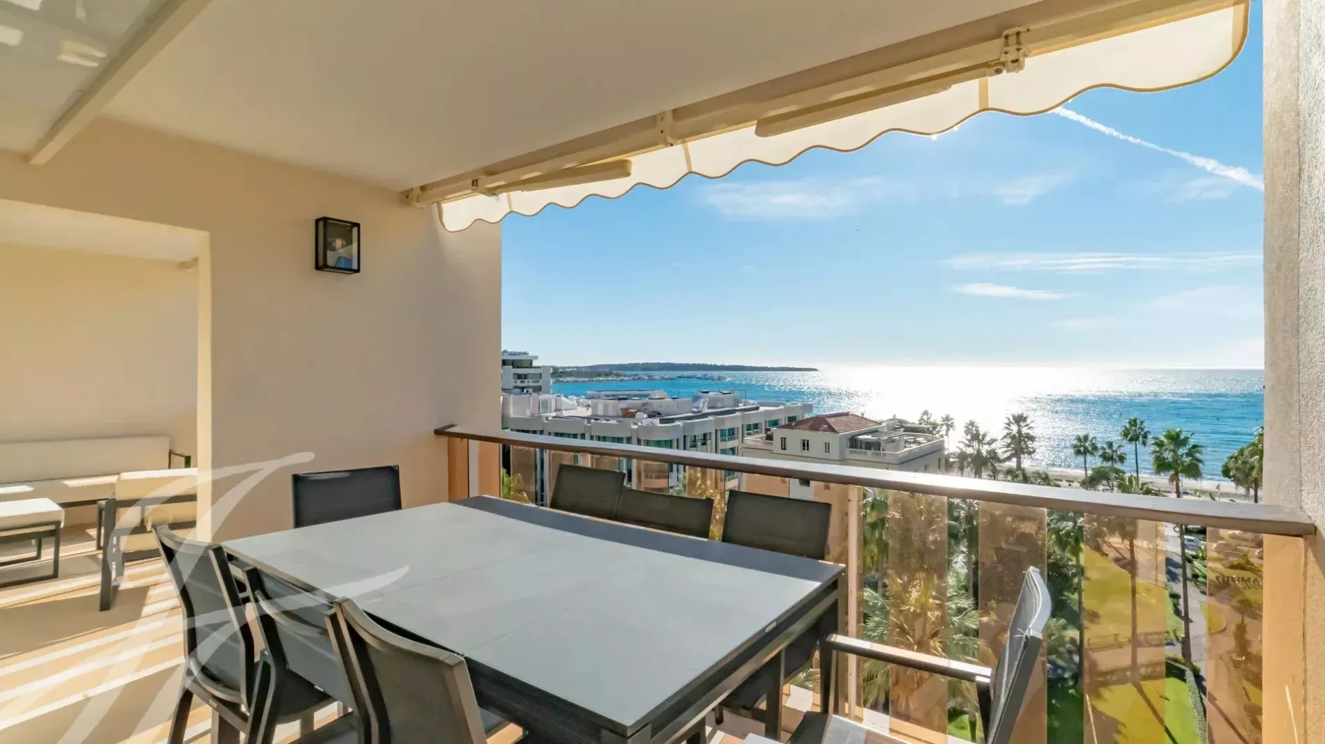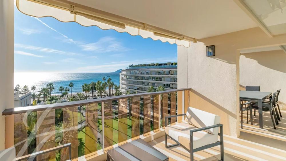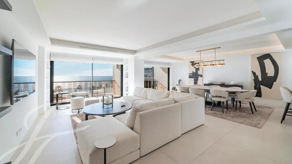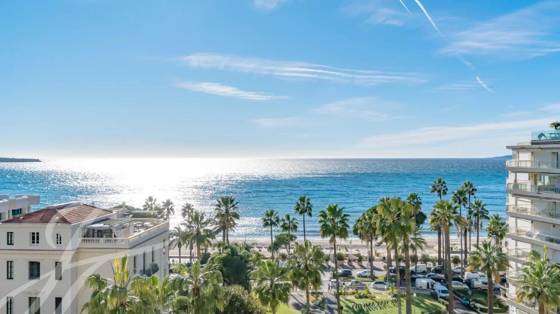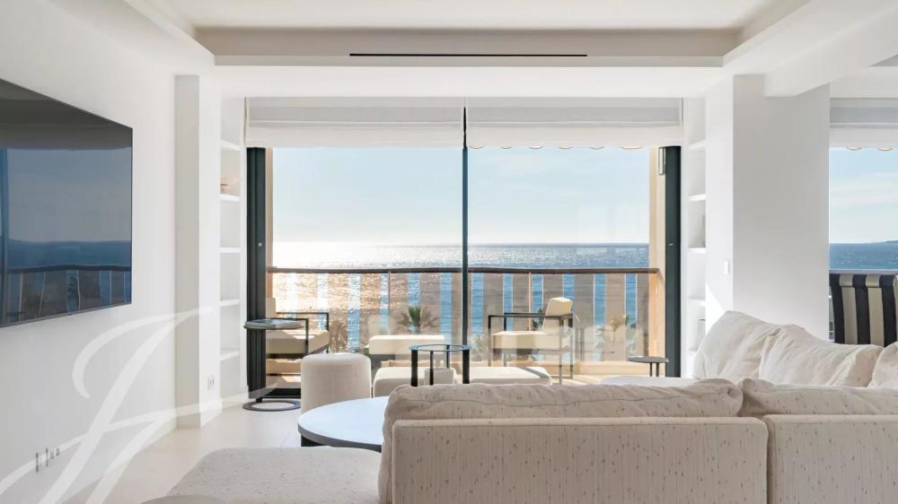 Located on the 7th floor of a prestigious residence in the heart of La Croisette, this stunning fully renovated and air-conditioned 233 m² contemporary apartment offers an exceptional living experience. Enjoy peaceful garden views and breathtaking panoramic sea views from its large south-facing terrace.