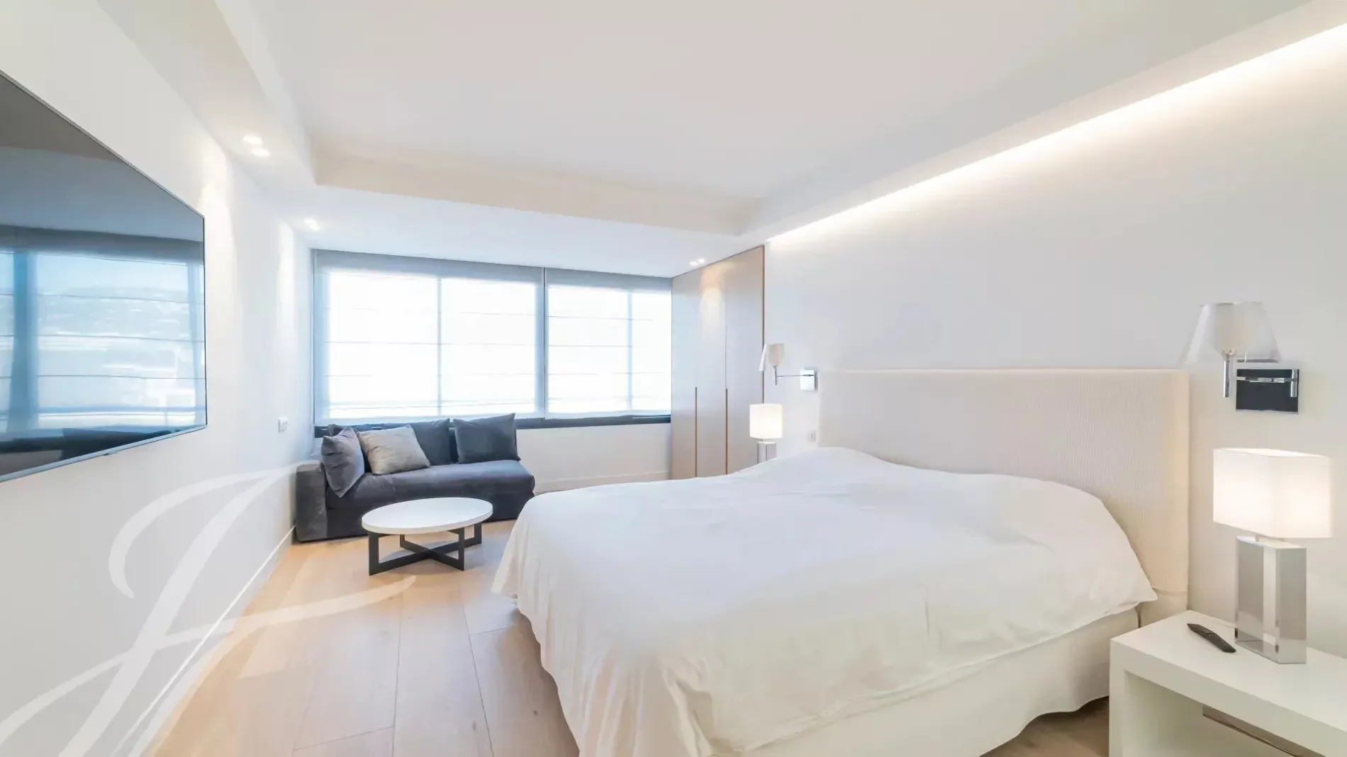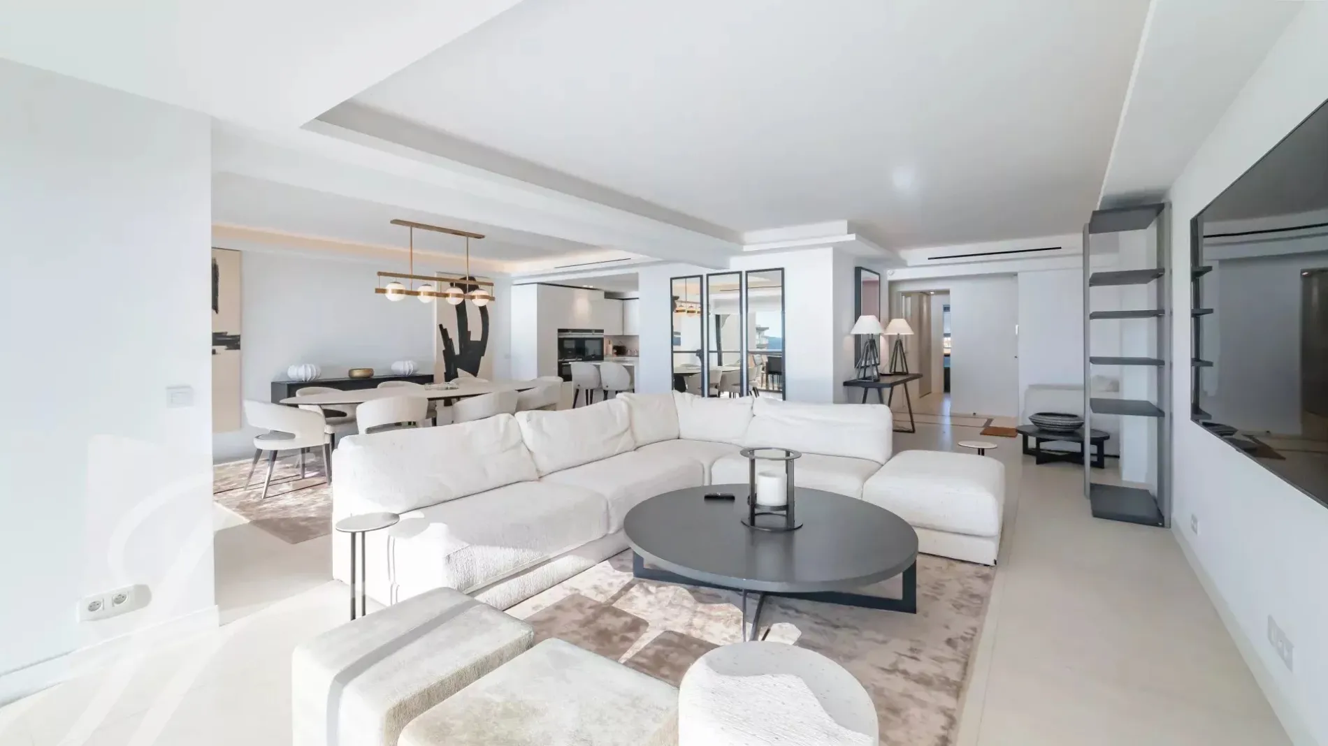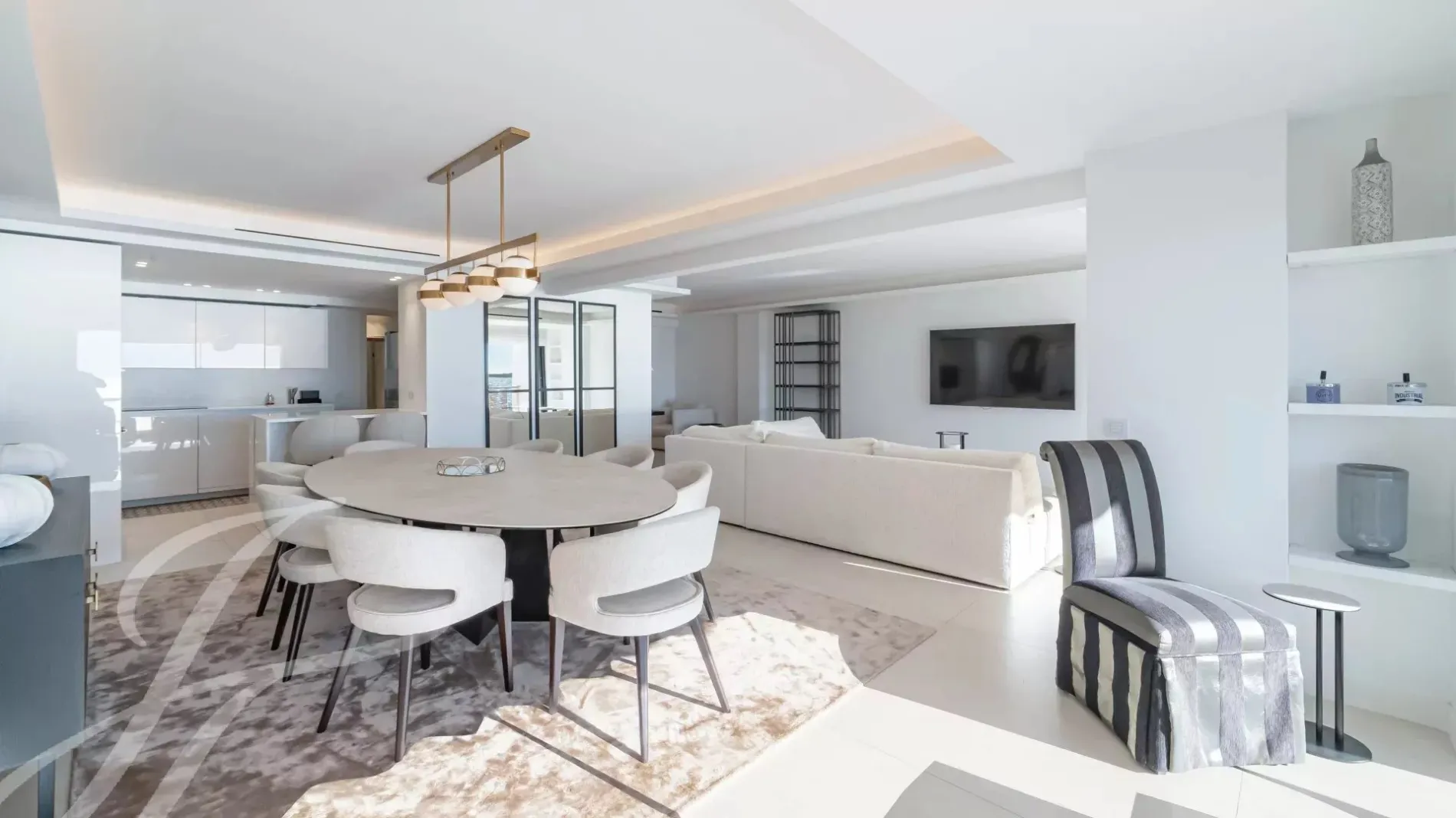 Located on the 7th floor of a prestigious residence in the heart of La Croisette, this stunning fully renovated and air-conditioned 233 m² contemporary apartment offers an exceptional living experience. Enjoy peaceful garden views and breathtaking panoramic sea views from its large south-facing terrace.