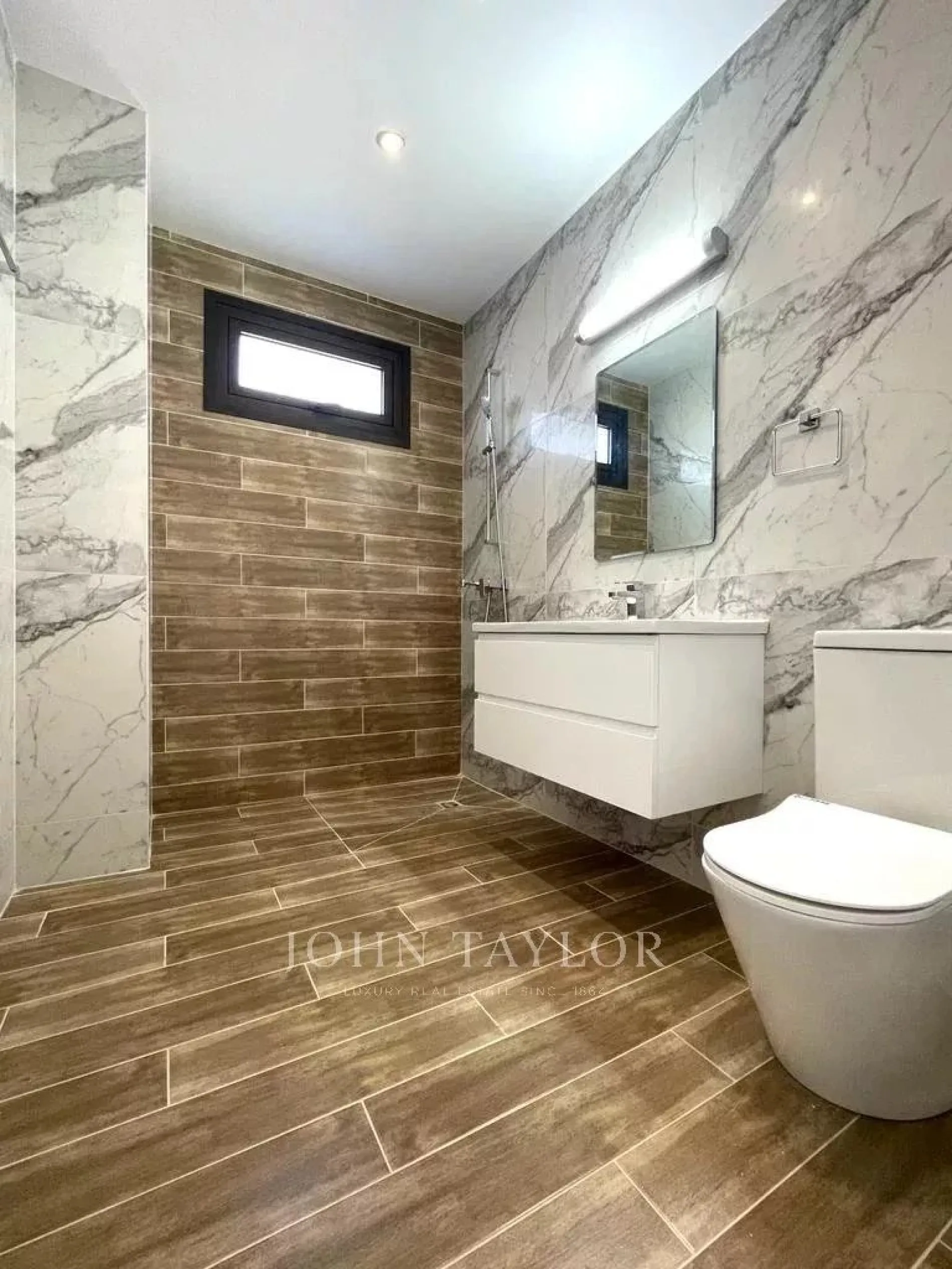Apartments feature high ceilings (over 3 m), open-plan living with modern kitchens, large verandas and turnkey finishes: underfloor heating, VRV climate control in living areas, split units in bedrooms, laminate parquet flooring and double-glazed windows. Built to European seismic and thermal standards with controlled entry, CCTV and video phone access, they deliver both comfort and security.