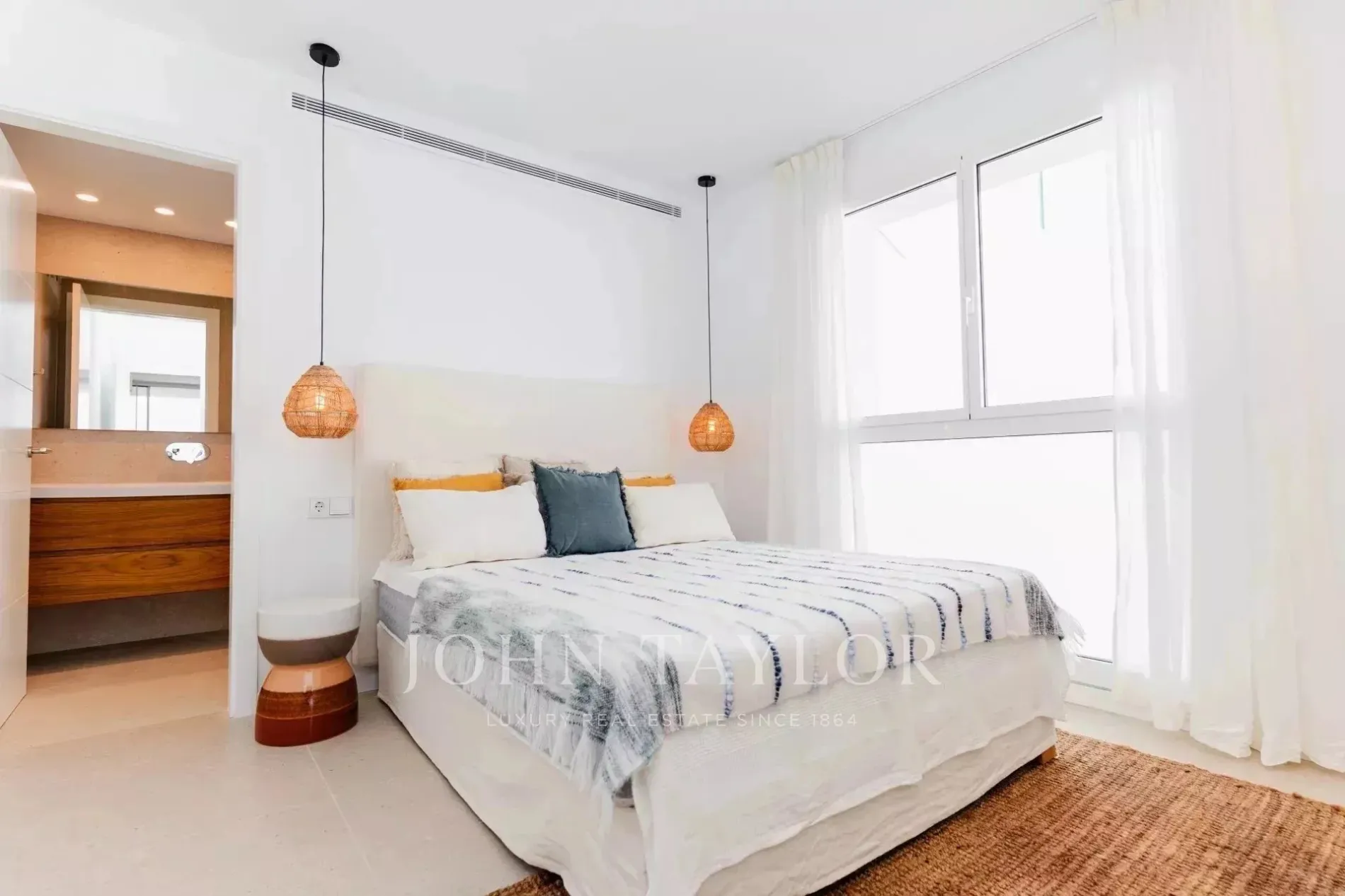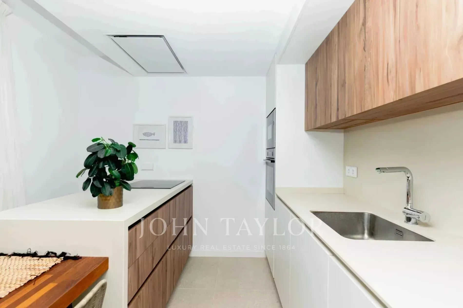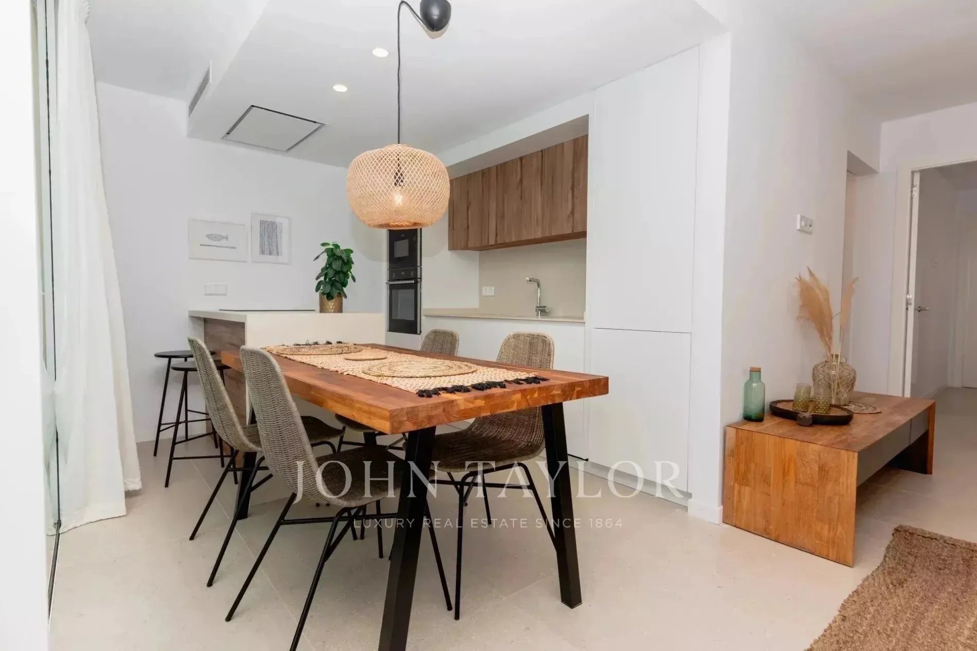 If you are looking for stunning sea views and a modern and luxurious apartment, this property could be a golden opportunity. Here you will live just 200 meters from the beach of S'Arenal d'en Castell, with all the necessary amenities for year-round wellness. You will find 1, 2 or 3 bedroom apartments with spacious terraces ranging from 100 to 260 square meters. The living space is generous and extremely bright, allowing you to enjoy the wonderful surroundings from your sofa. After enjoying the interior spaces, you will have access to common areas that include a children's play area, a coworking space, a swimming pool, a gym and a spa. The property has a parking space and a storage room.