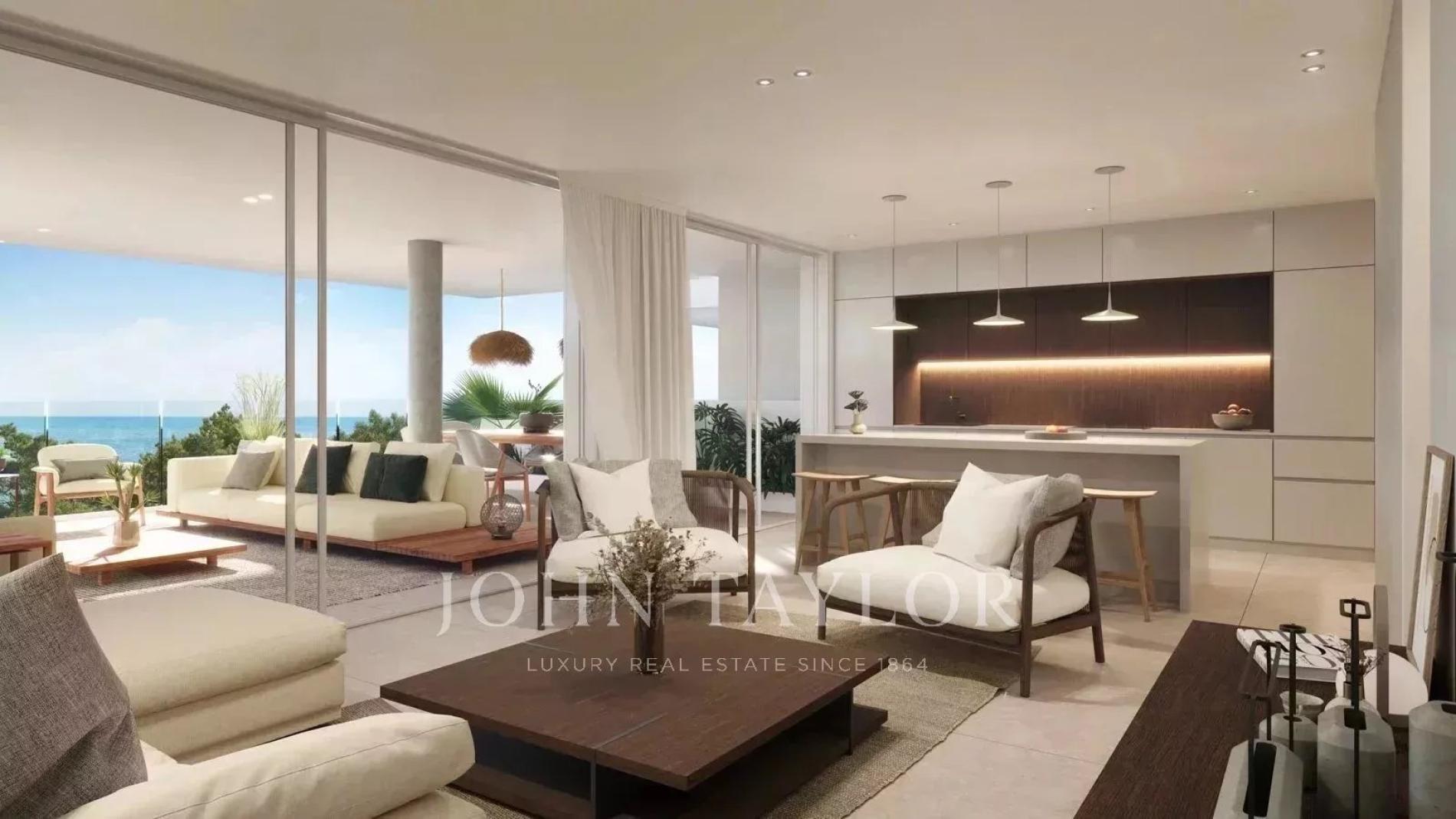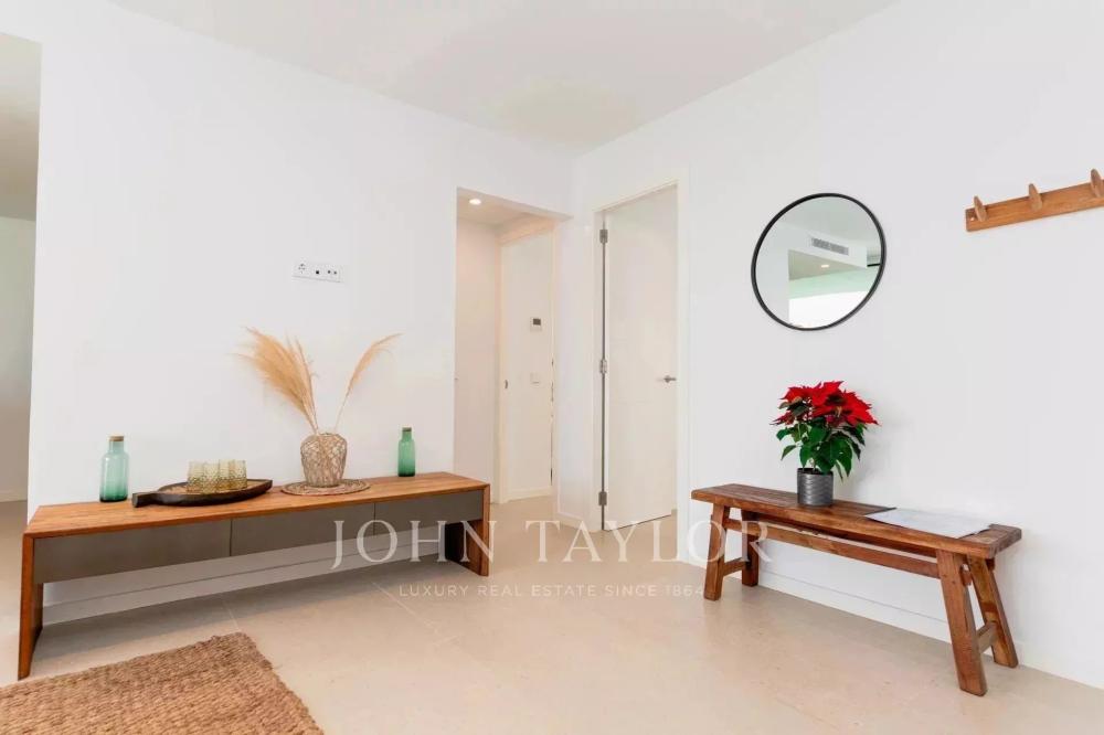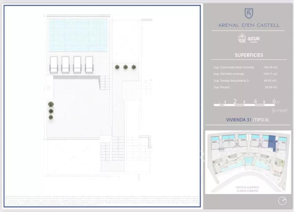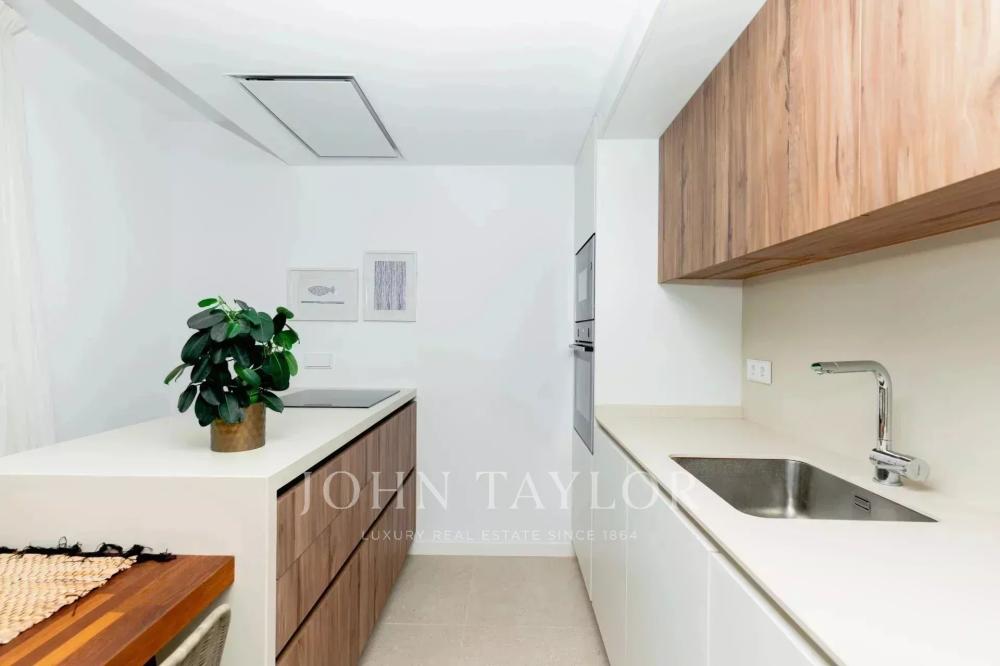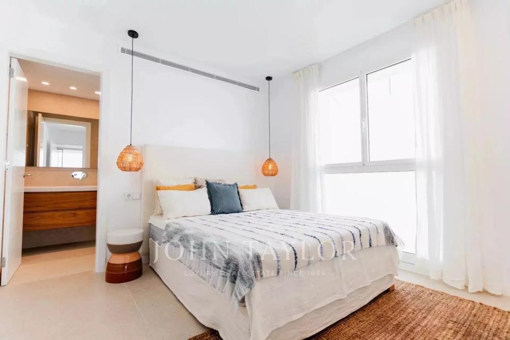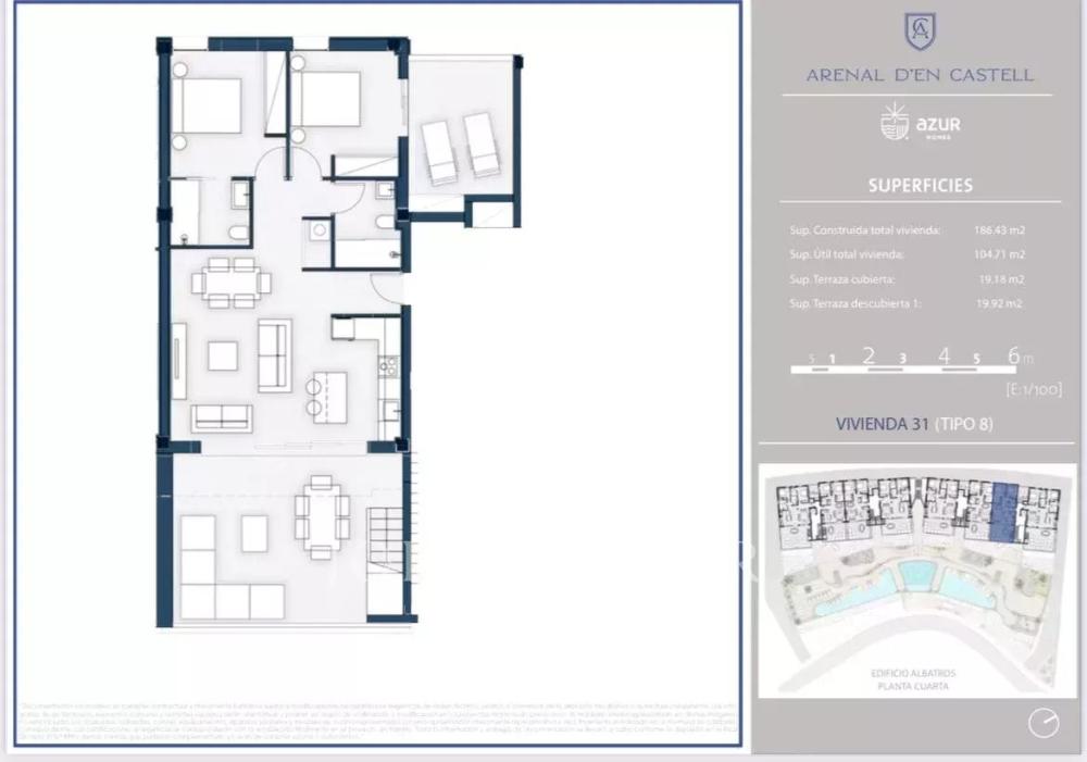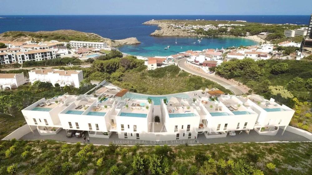 If you are looking for stunning sea views and a modern and luxurious apartment, this property could be a golden opportunity. Here you will live just 200 meters from the beach of S'Arenal d'en Castell, with all the necessary amenities for year-round well-being. You will find 1, 2 or 3 bedroom apartments with spacious terraces ranging from 100 to 260 square meters. The living space is generous and extremely bright, allowing you to enjoy the wonderful surroundings from your sofa. After enjoying the interior spaces, you will have access to common areas that include a children's play area, a coworking space, a swimming pool, a gym and a spa. The property has a parking space and a storage room.