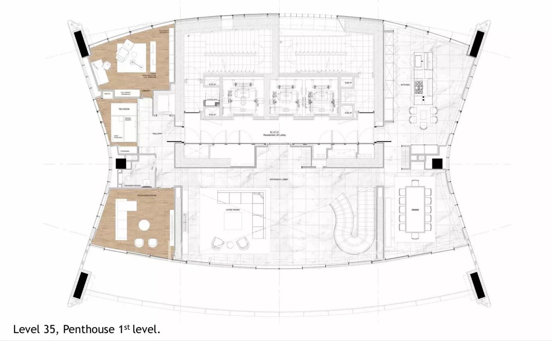 * Spans three private levels (35th–37th floors)