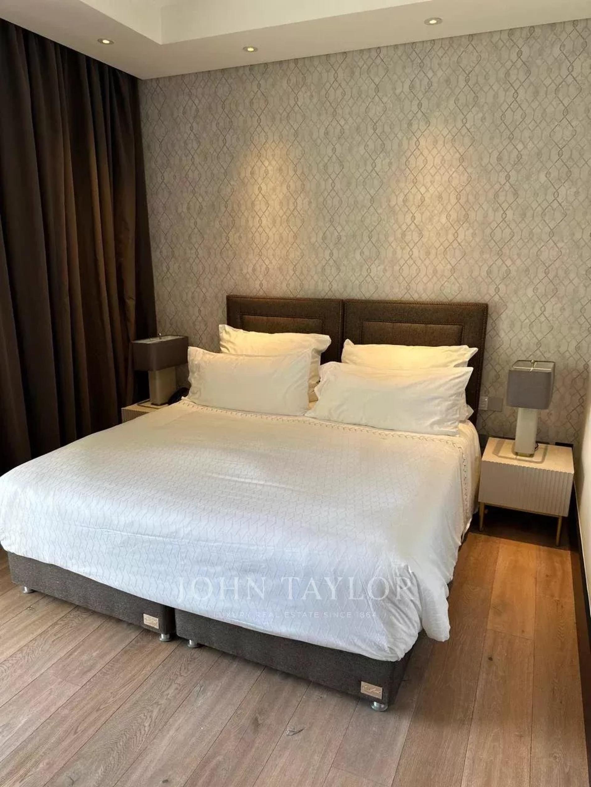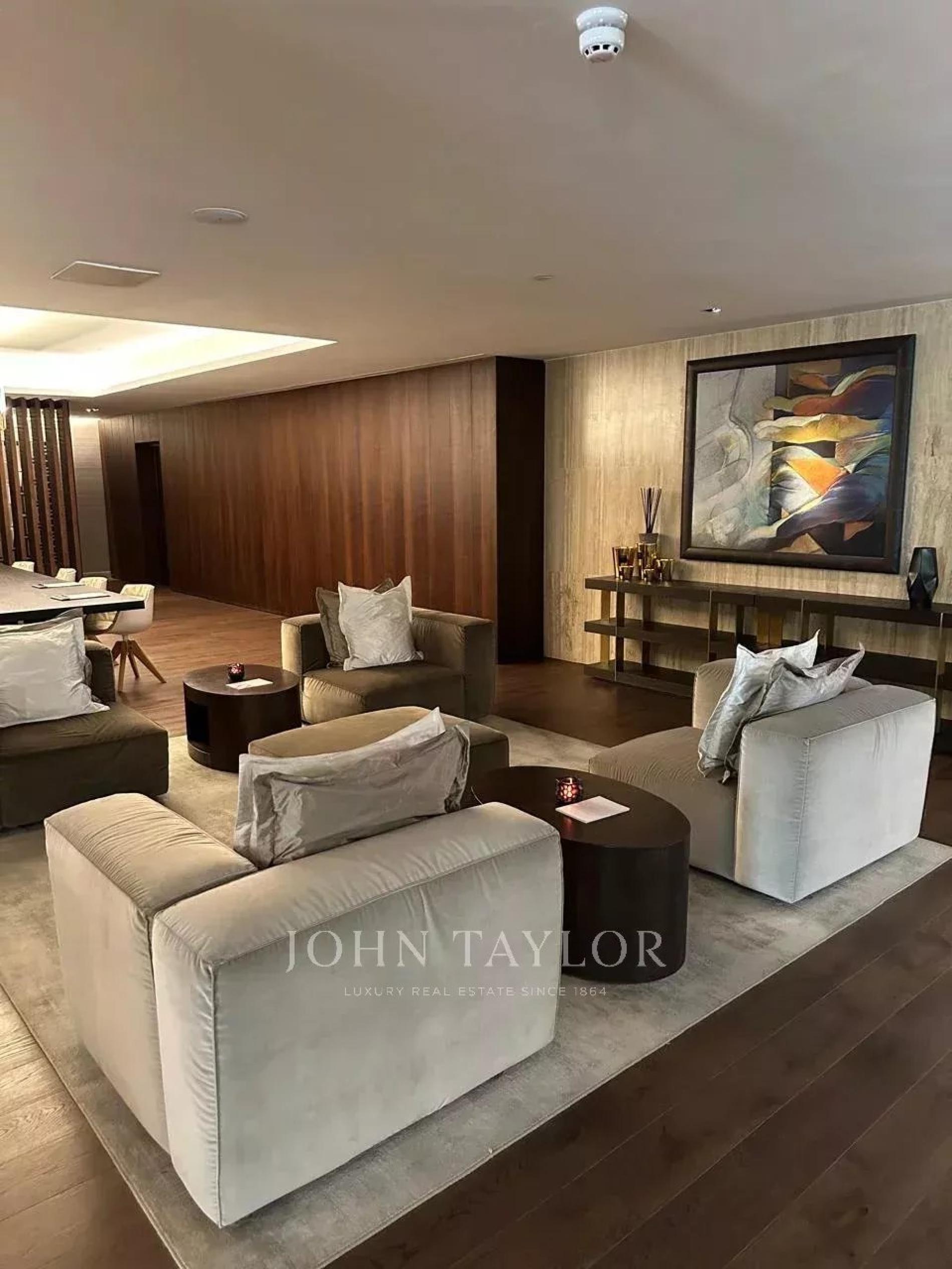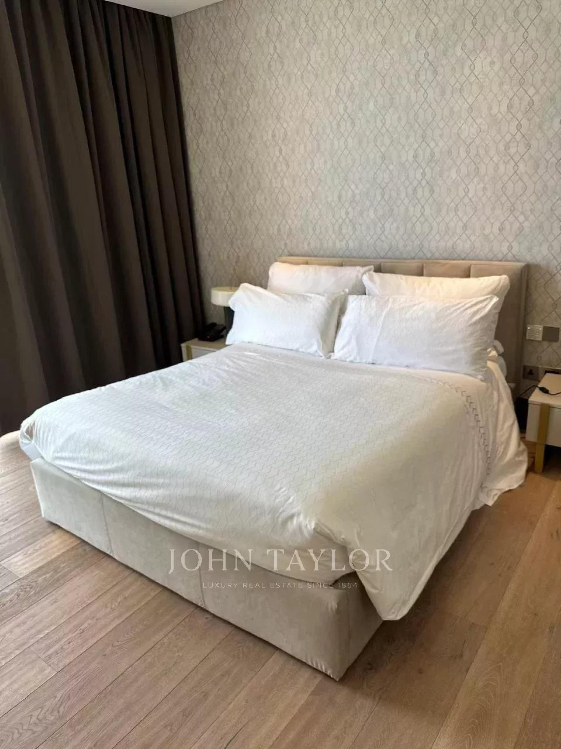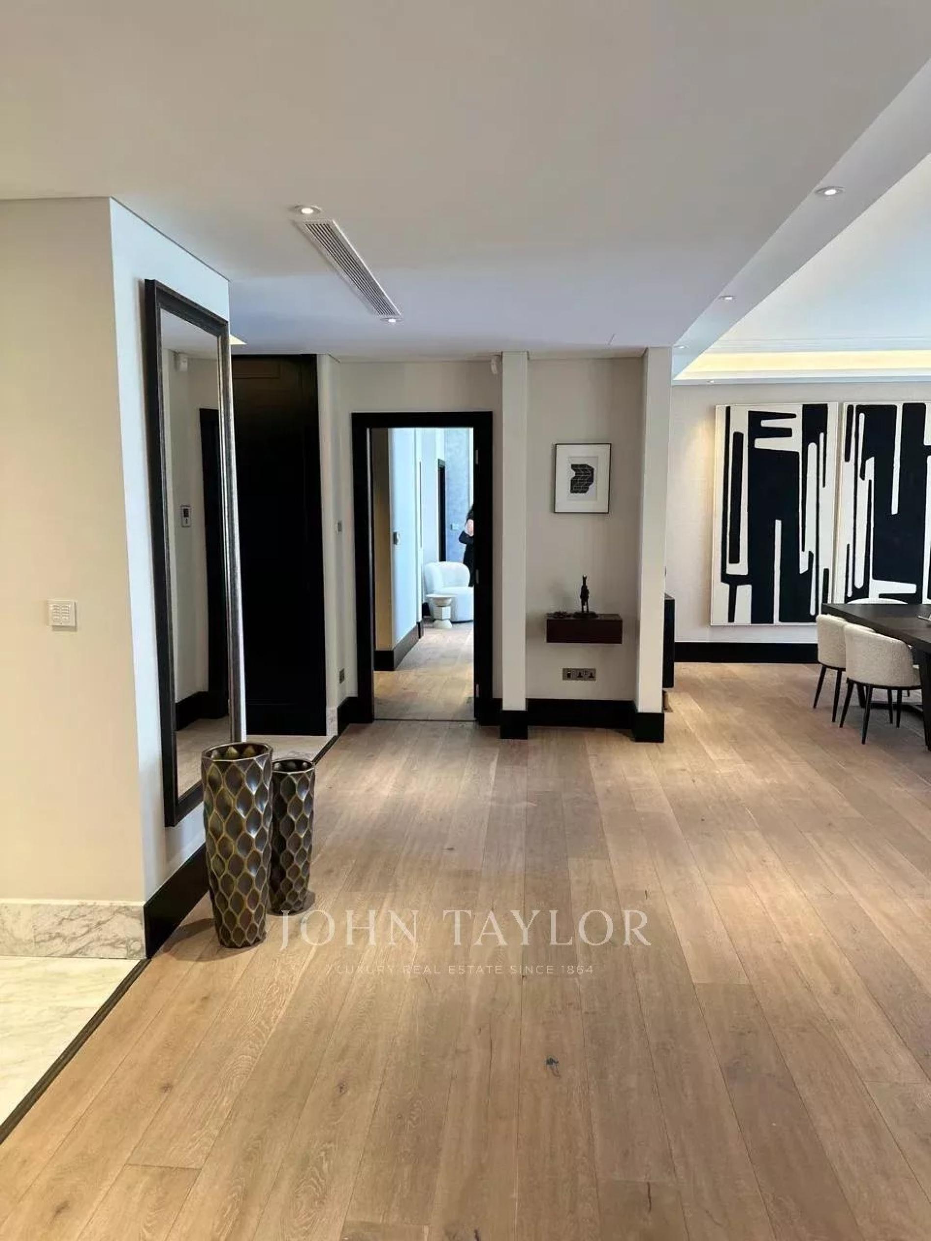 The three-bedroom layout encompasses the entire floor, ensuring sweeping vistas, generous interior spaces, and a tranquil atmosphere. Designed for both prestige and comfort, the apartment is bright, spacious, and meticulously appointed.