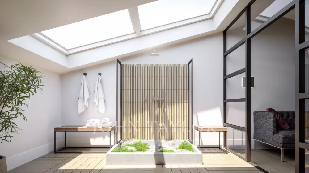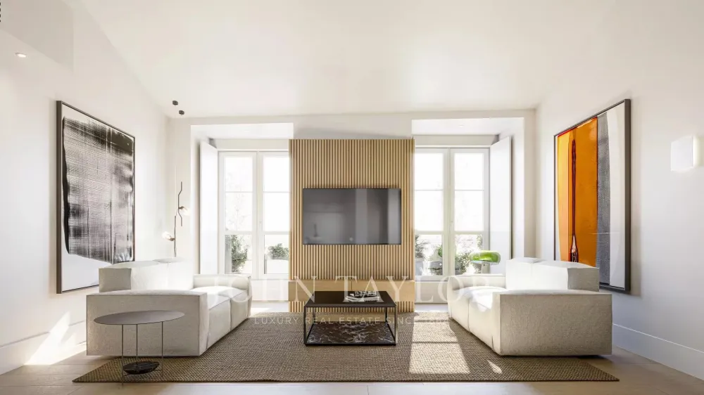 This 158 m² penthouse, accessible by an elevator, is situated in the Alecrim 51 building in Chiado, Lisbon, on one of the city’s most iconic streets. The 18th-century building has been fully restored, preserving its Pombaline style while incorporating modern comforts.