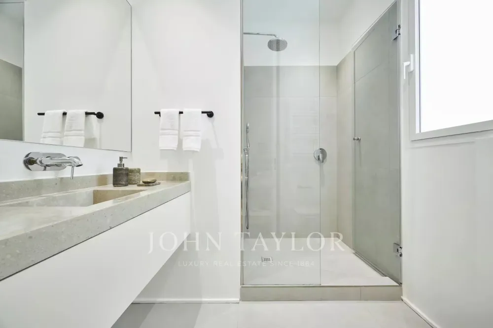 It has three spacious bedrooms, each with en suite bathroom, a guest toilet and a storage room, offering a perfect distribution that enhances the natural light and elegance of each room.