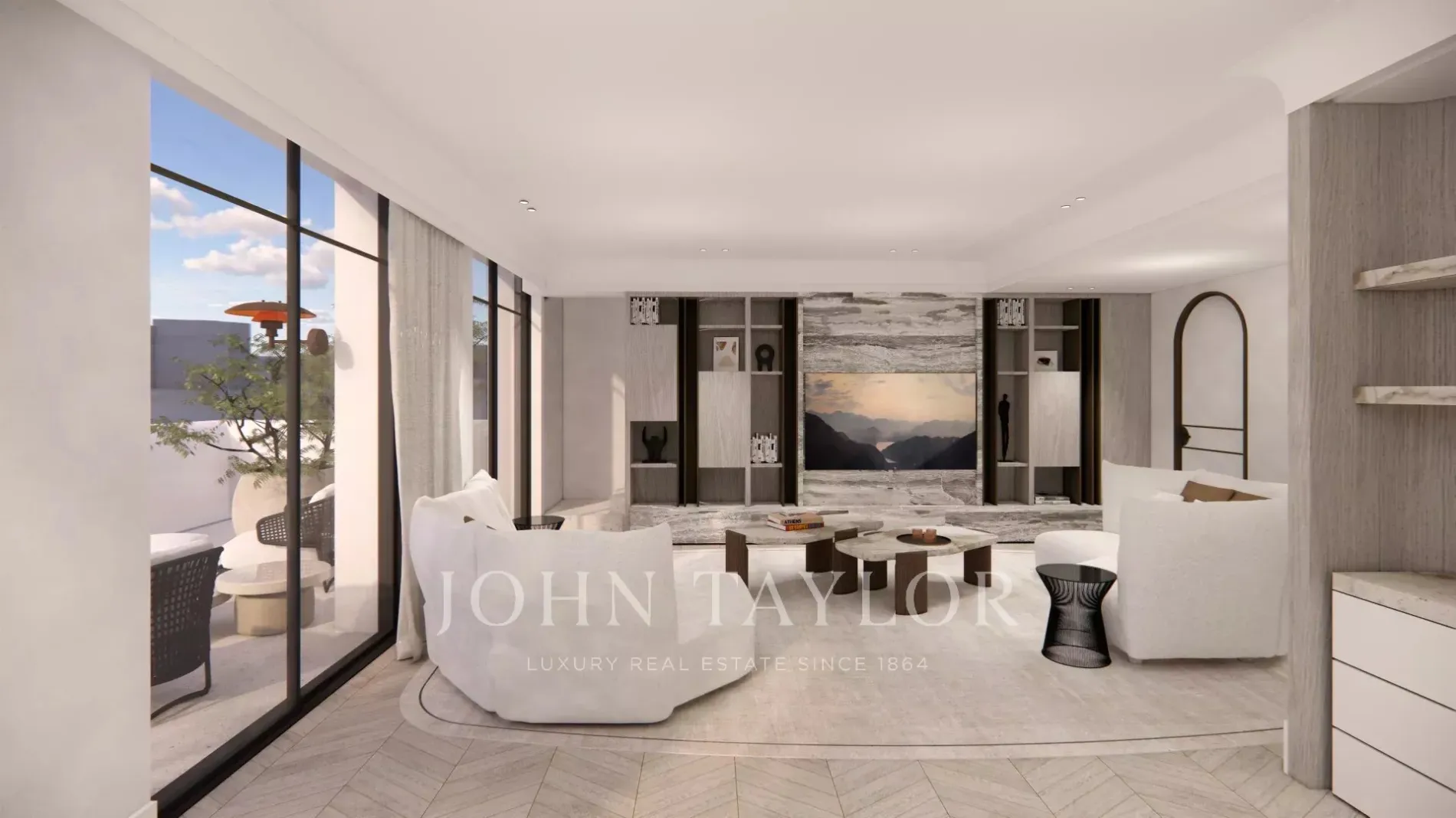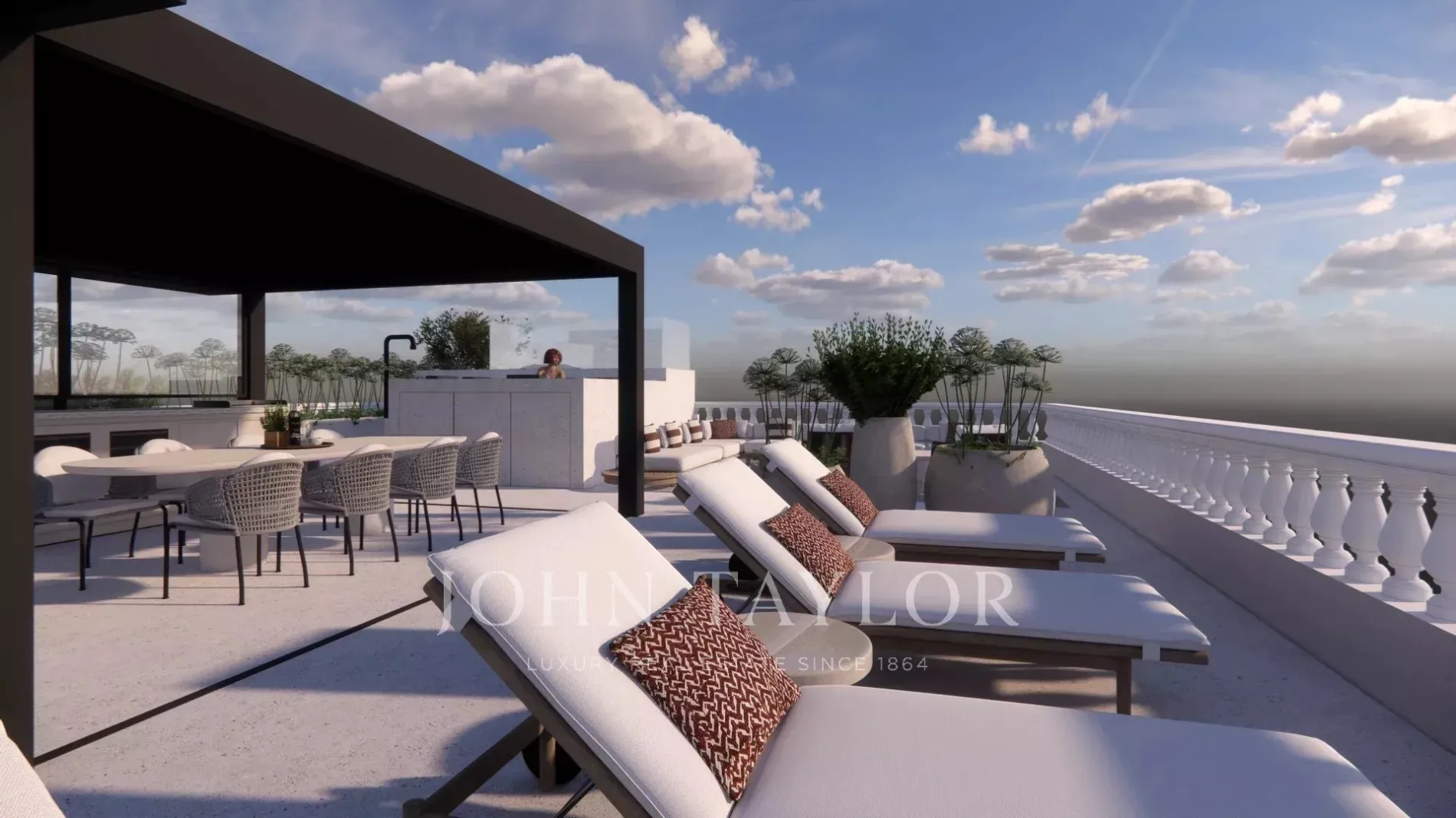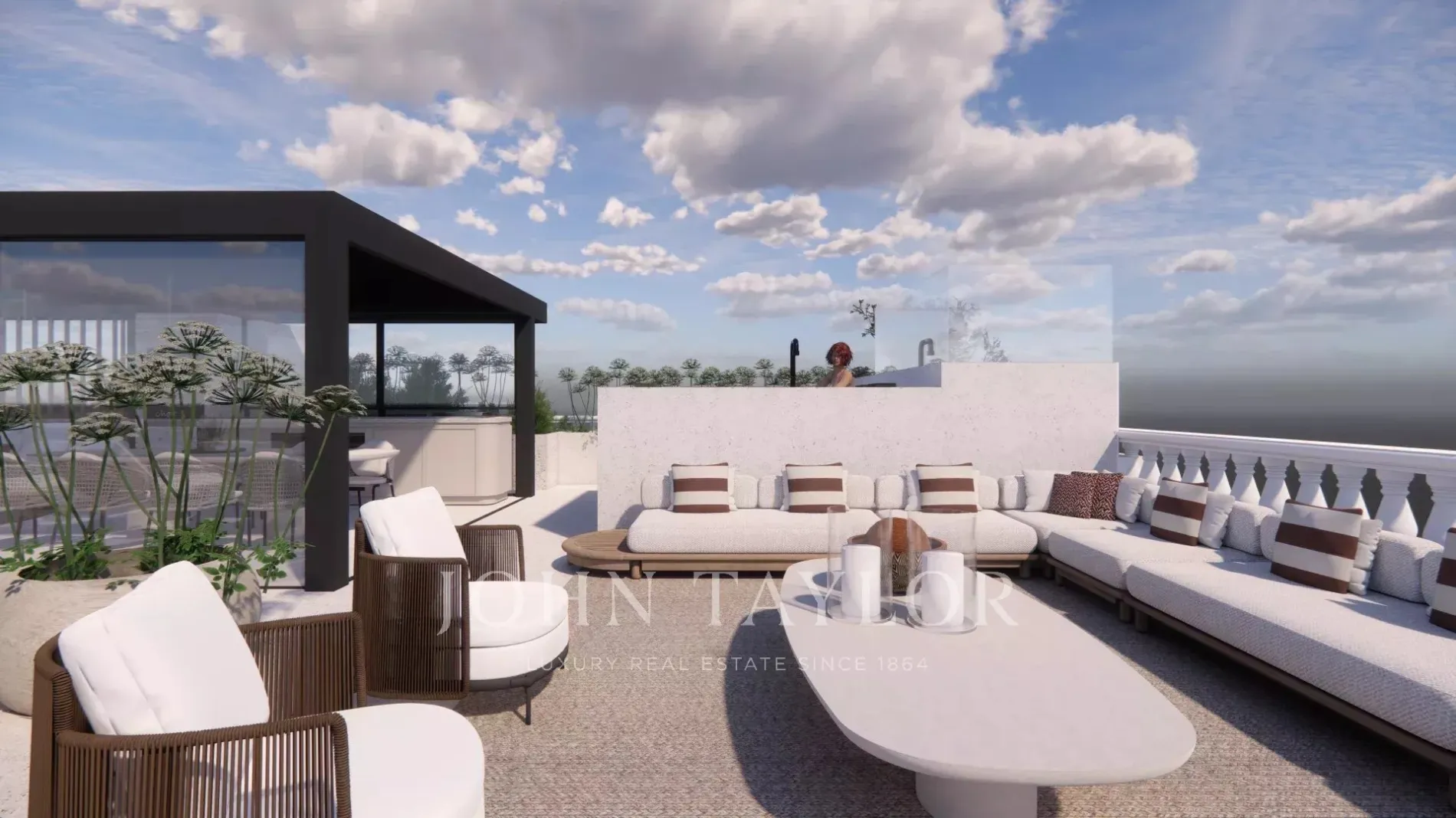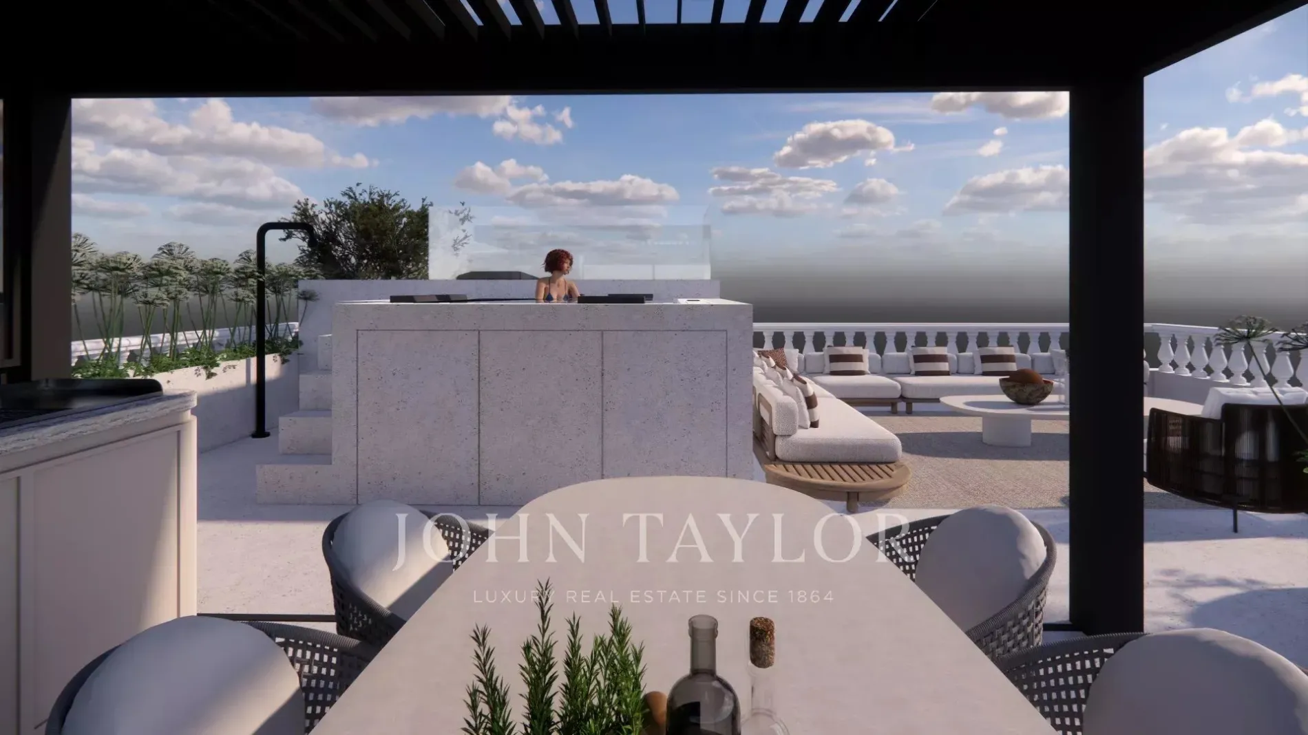 Two large terraces with lounge area and at the top level, a spectacular rooftop completes the property, featuring a summer kitchen and a private jacuzzi — the perfect setting for moments of serenity or stylish entertaining, above the rooftops of Monte-Carlo.