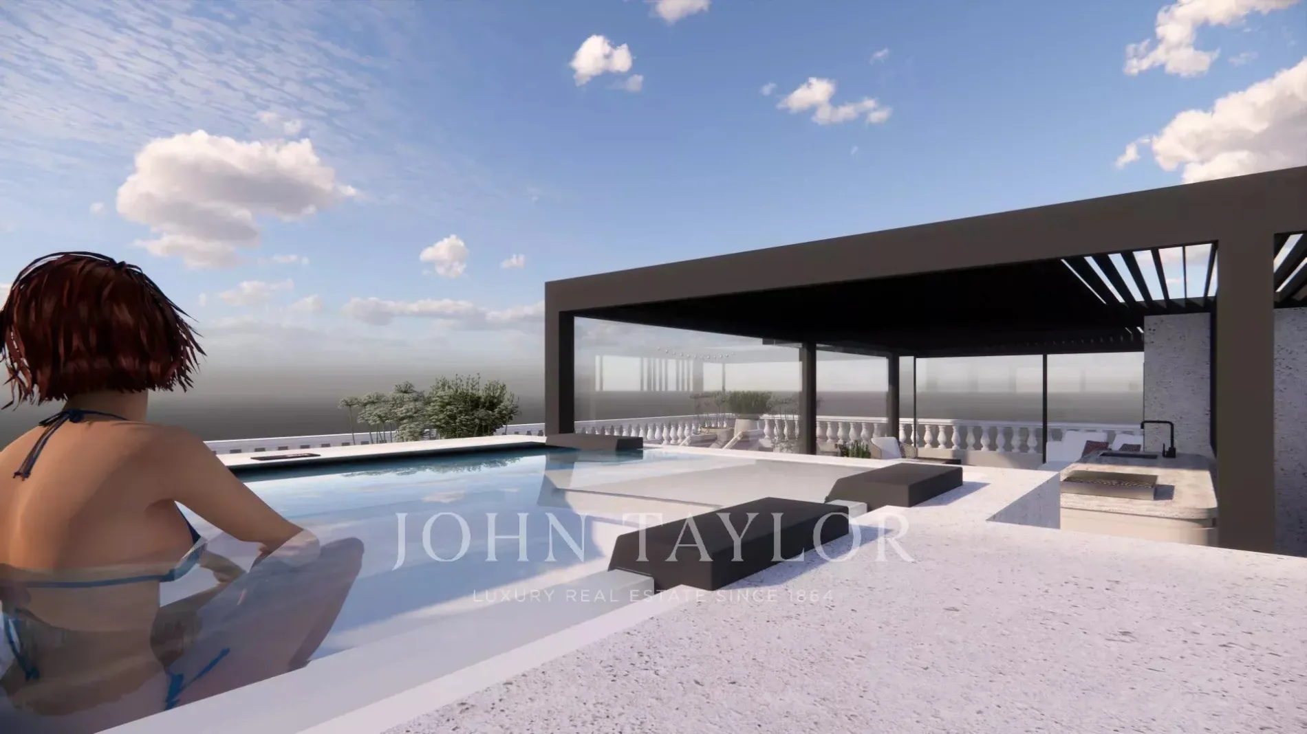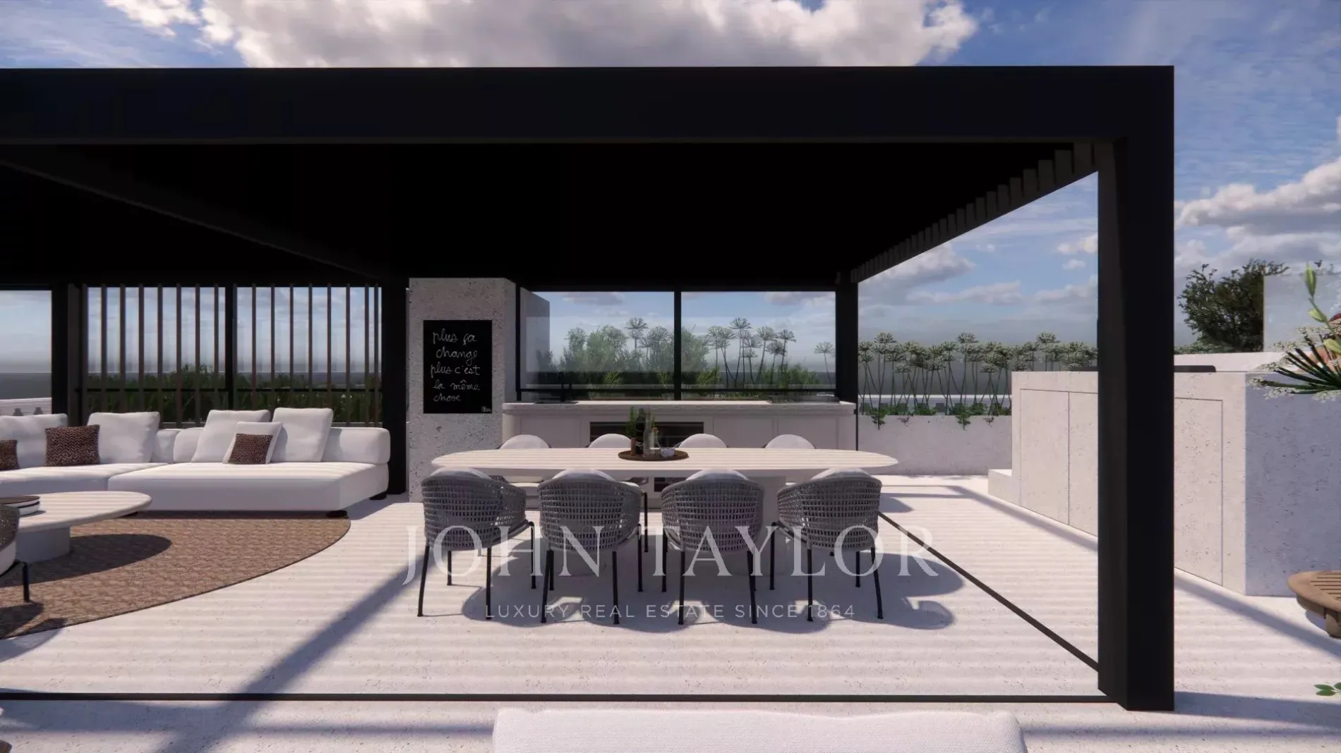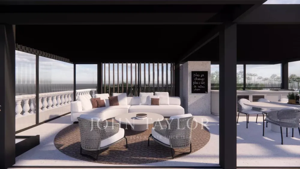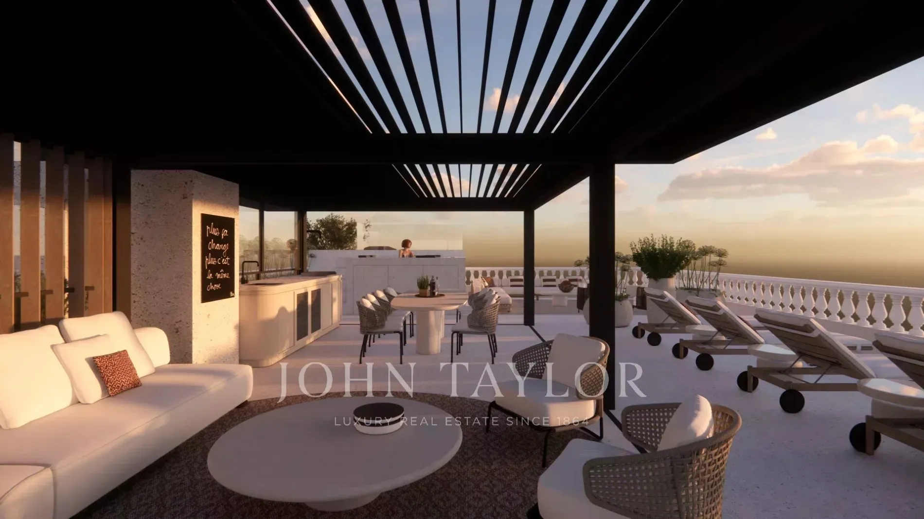 Two large terraces with lounge area and at the top level, a spectacular rooftop completes the property, featuring a summer kitchen and a private jacuzzi — the perfect setting for moments of serenity or stylish entertaining, above the rooftops of Monte-Carlo.