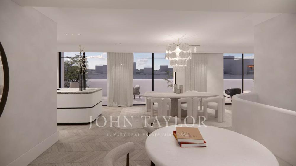 Located in the heart of Monte-Carlo, this duplex penthouse in the renowned Palais des Moulins residence offers a refined lifestyle in a serene and central setting. Positioned on a high floor, the residence opens onto two expansive, landscaped terraces perfect for relaxation and entertaining.