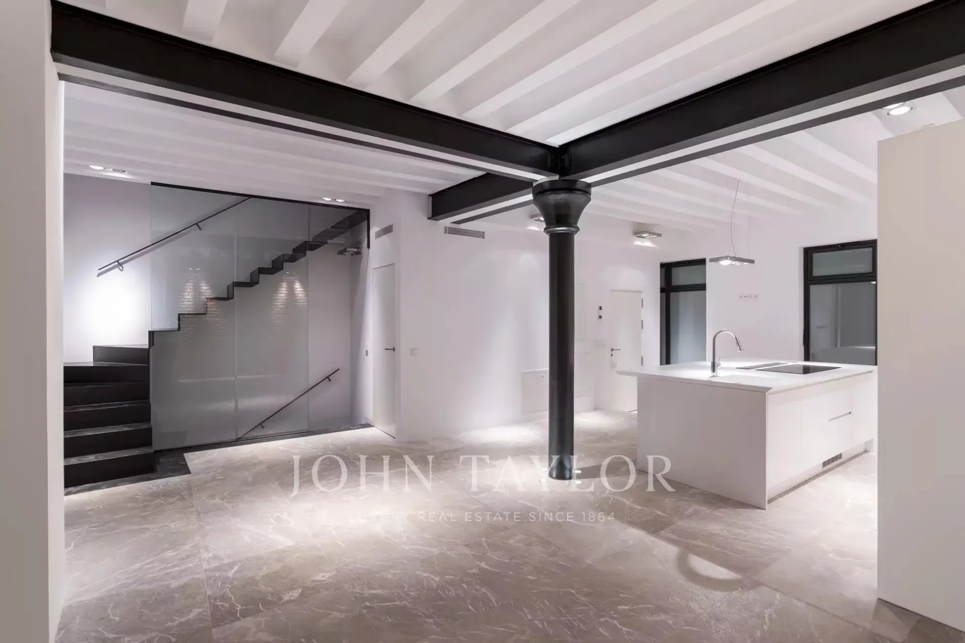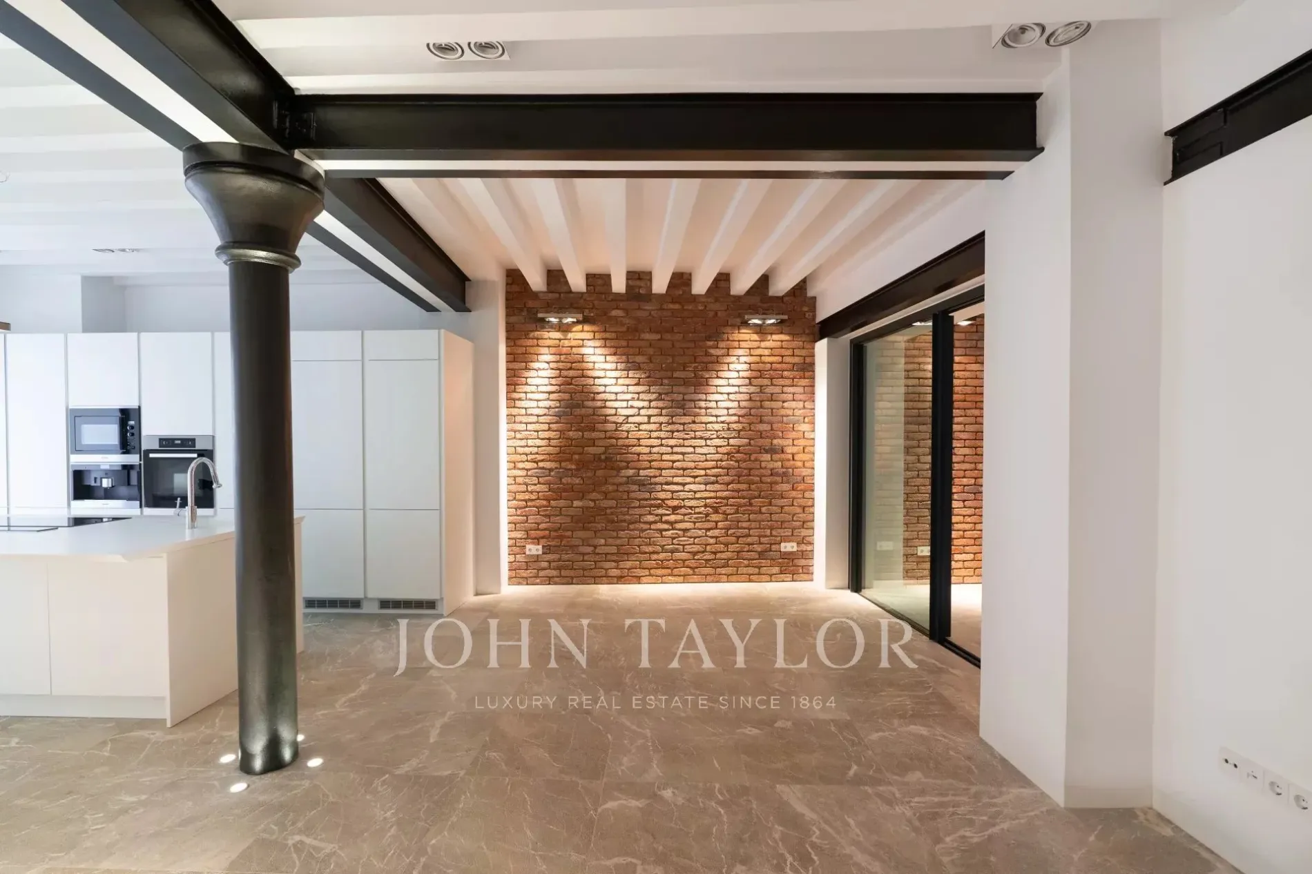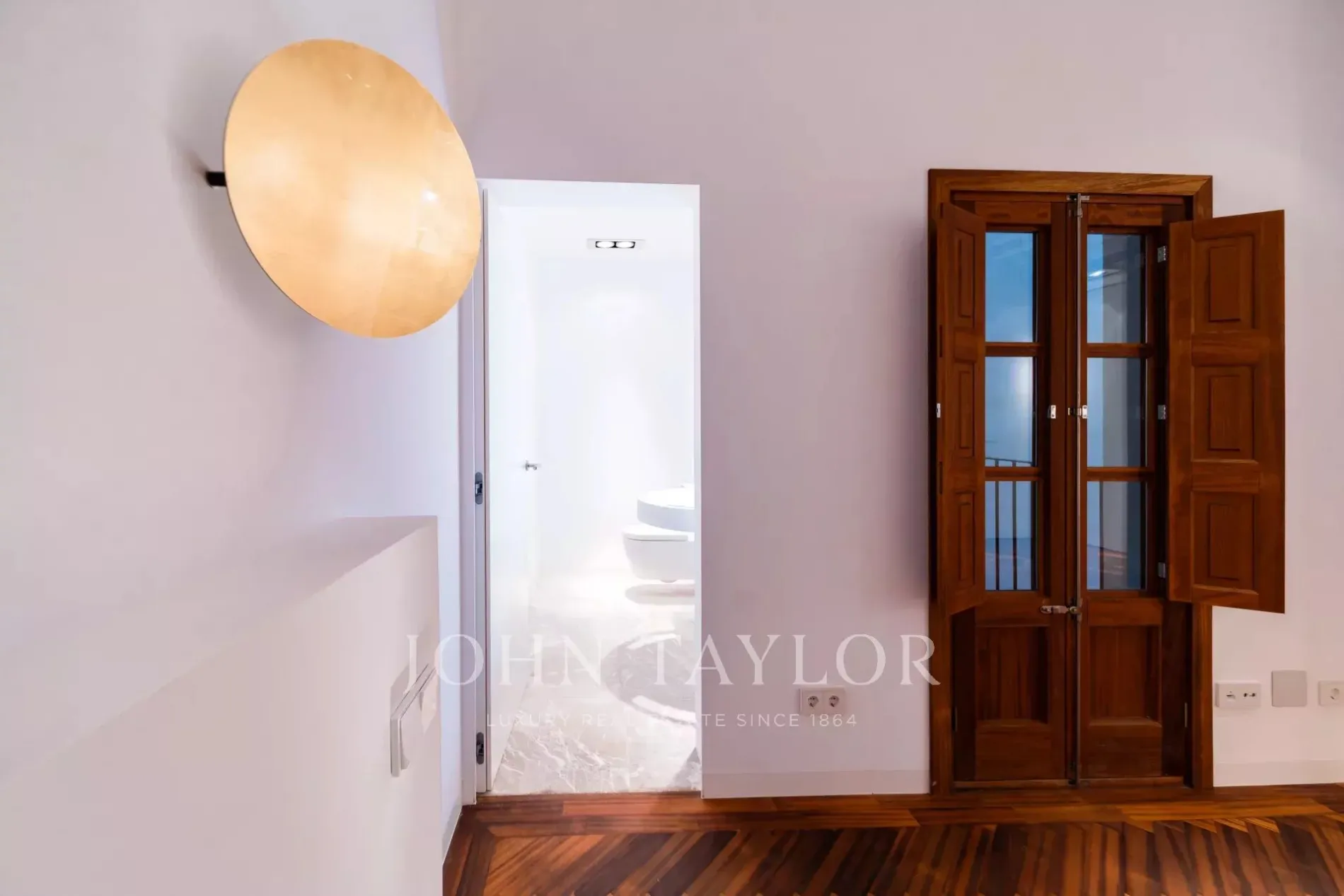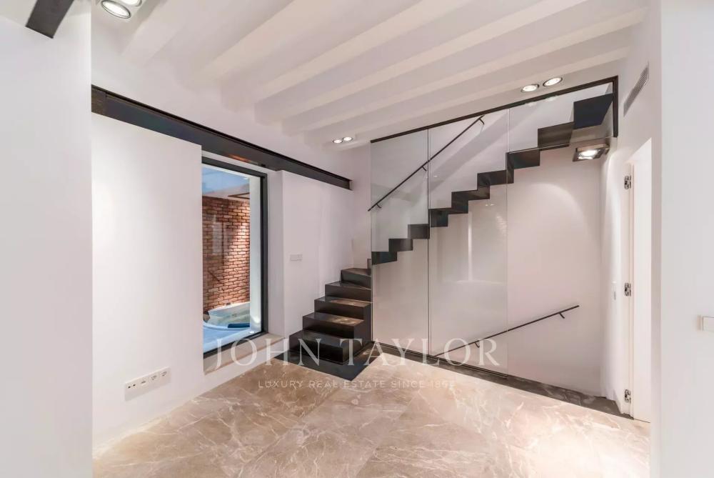 Step into the vibrant pulse of Palma with this high-end ground-floor duplex apartment, masterfully blending New York City industrial flair with Mallorcan heritage. Behind its historic façade lies a bold, stylish interior where exposed red brick walls, soaring spaces, and sleek design elements create an unmistakably urban vibe.