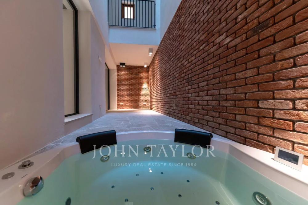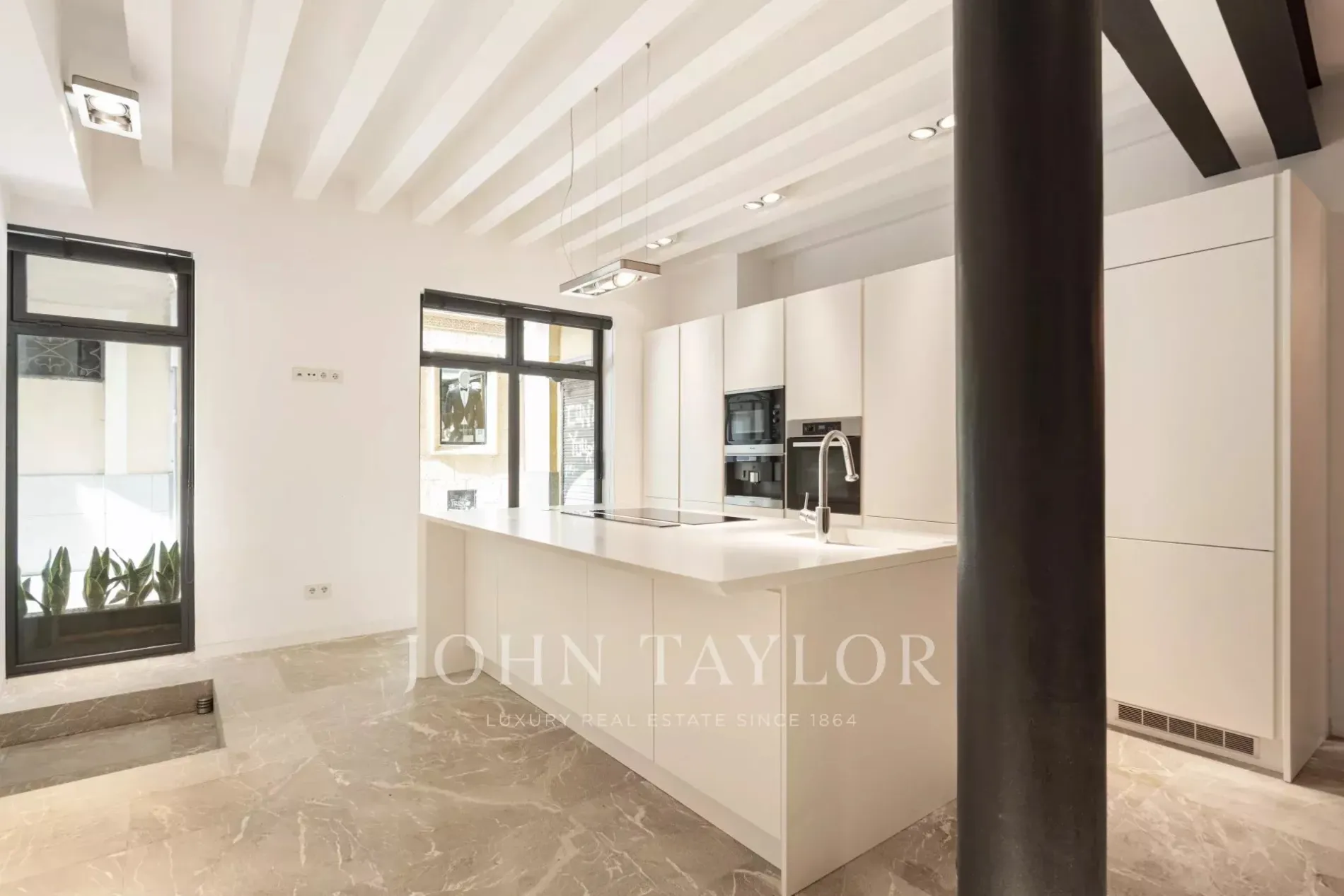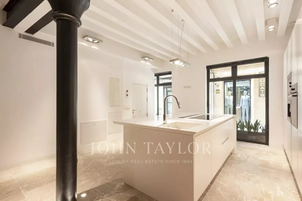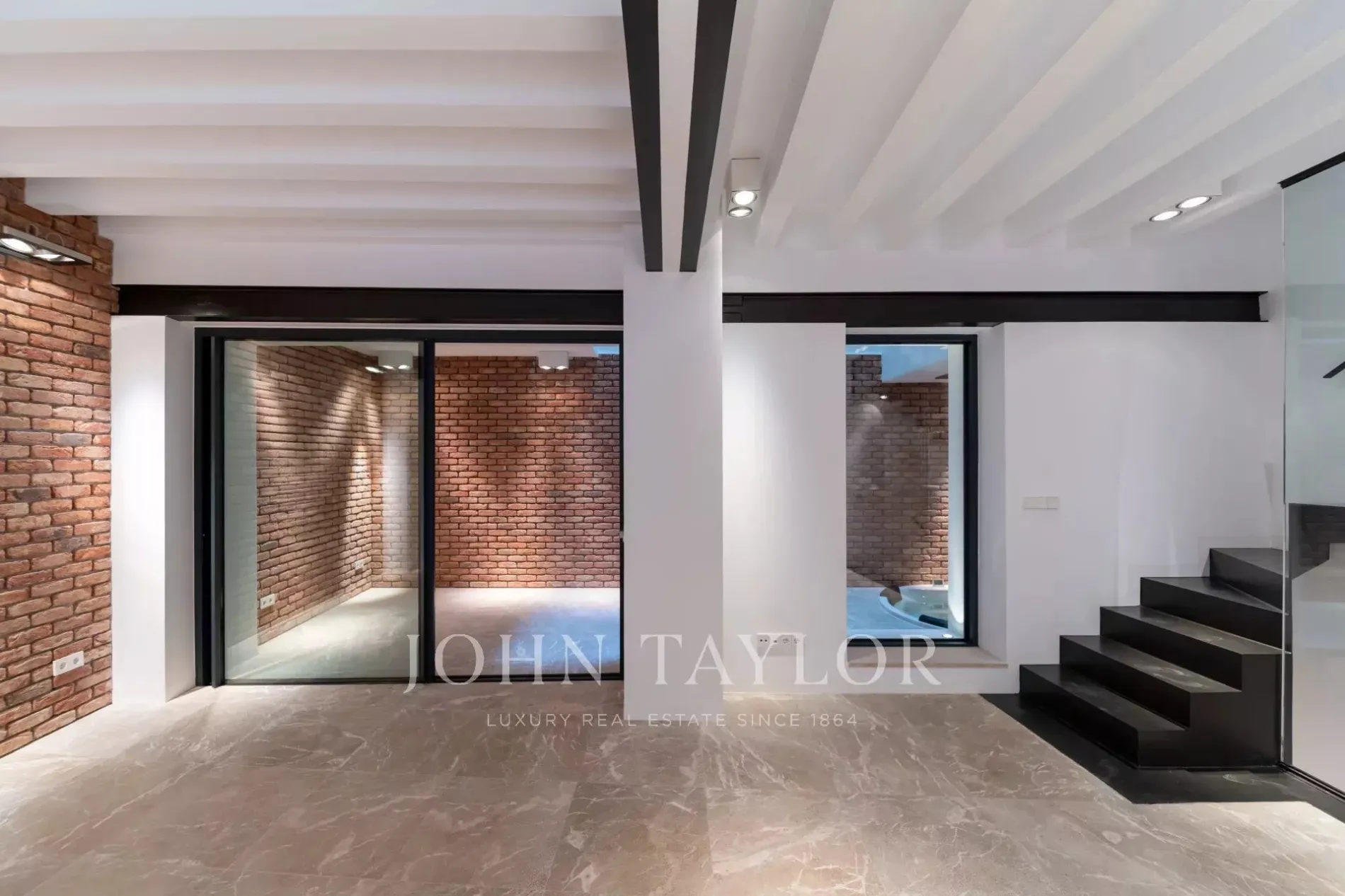 Step into the vibrant pulse of Palma with this high-end ground-floor duplex apartment, masterfully blending New York City industrial flair with Mallorcan heritage. Behind its historic façade lies a bold, stylish interior where exposed red brick walls, soaring spaces, and sleek design elements create an unmistakably urban vibe.