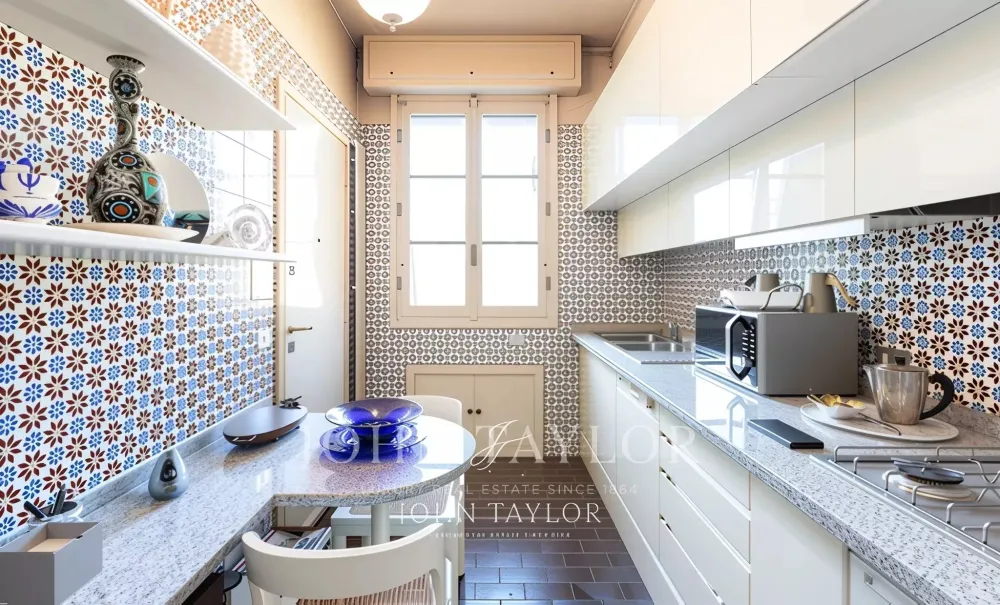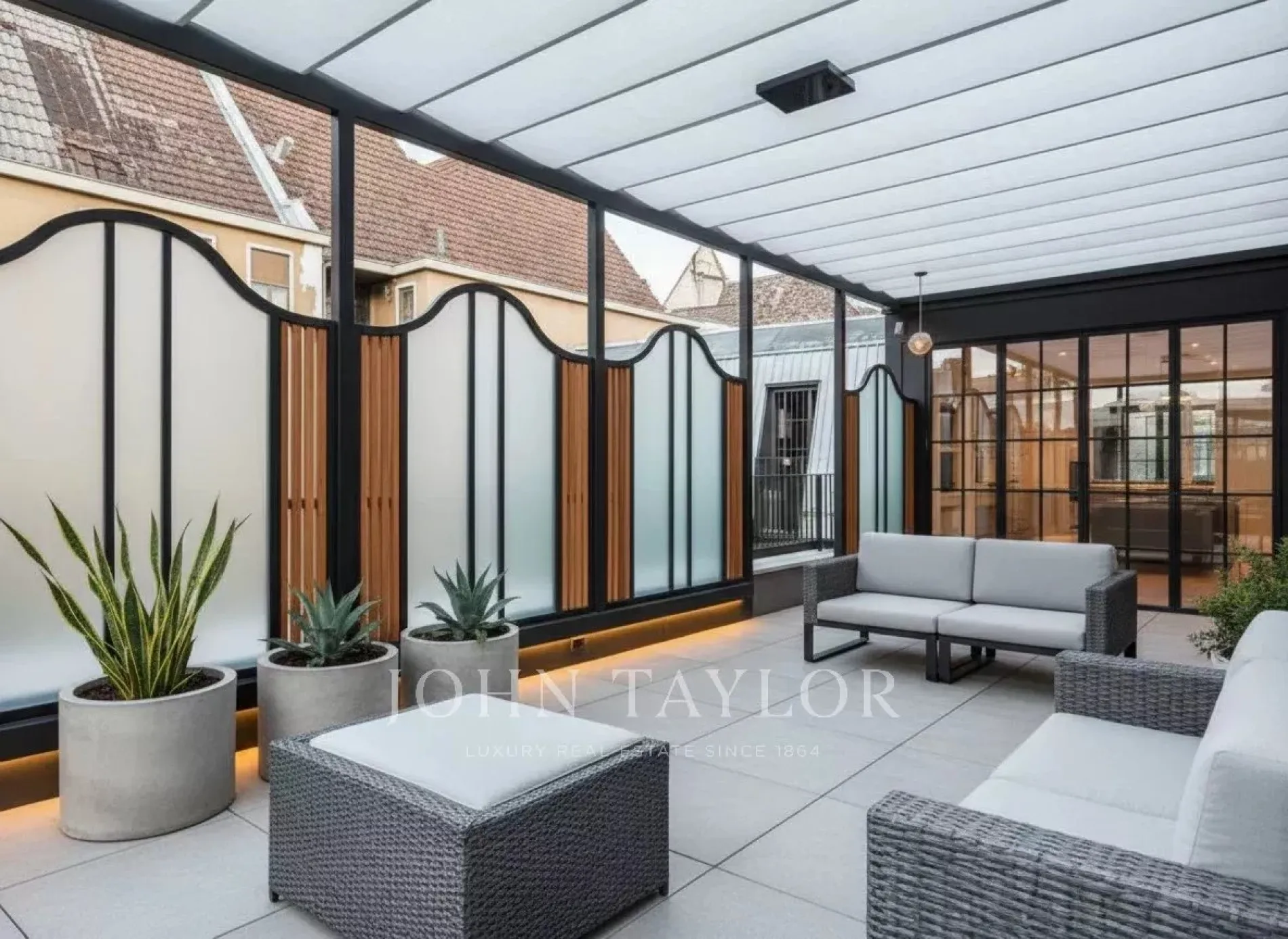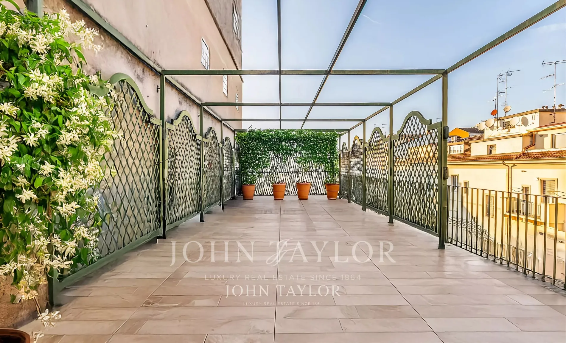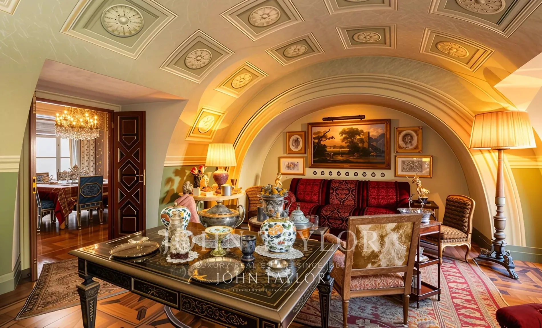 An exclusive John Taylor, top-floor residence in an elegant and prestigious setting with full-day concierge service, we offer an exclusive residence of exceptional charm, distinguished by maximum privacy. The property, measuring approximately 250 sqm, is the result of a significant architectural project designed by a renowned Italian architect and features finishes of the highest standard throughout. The spacious and light-filled interiors include a frescoed grand living room, a formal dining room adorned with bas-relief details, two master bedrooms, a study, a large eat-in kitchen, and two bathrooms. The residence is offered fully furnished with unique, historically valuable pieces, meticulously selected with exceptional care. The property is further enhanced by a magnificent, expansive terrace on the same level, beautifully landscaped and furnished, making this home a residence of truly rare distinction. Confidential negotiations.