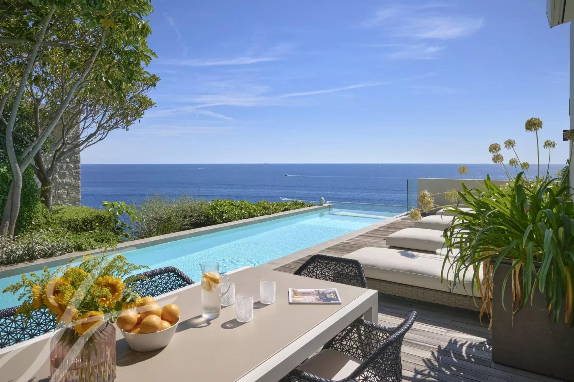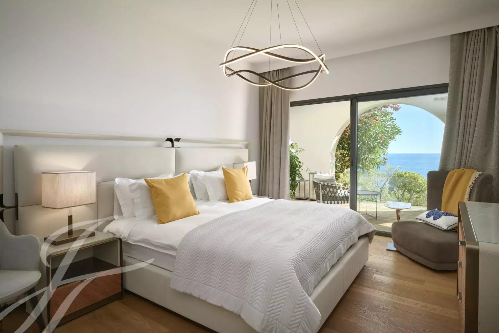 It is composed of an entrance hall, a double living room opening onto spacious terraces facing the sea, a kitchen and a dining room, 4 bedrooms each with its own bathroom and a private swimming pool with a summer kitchen, dining area and outdoor lounge.