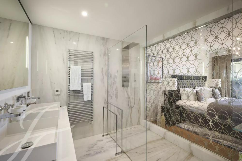 entrance, a private swimming pool and a lift serving all floors. It offers a very high quality of finishing combined with the beautiful sea view from all the levels.