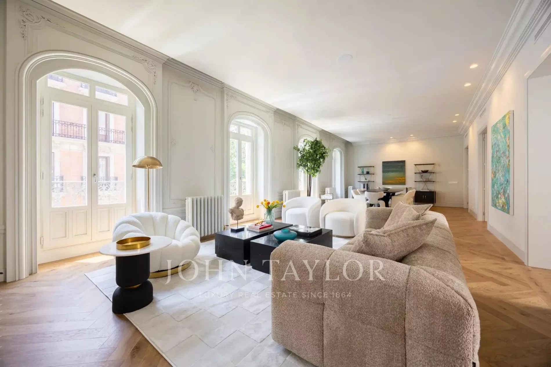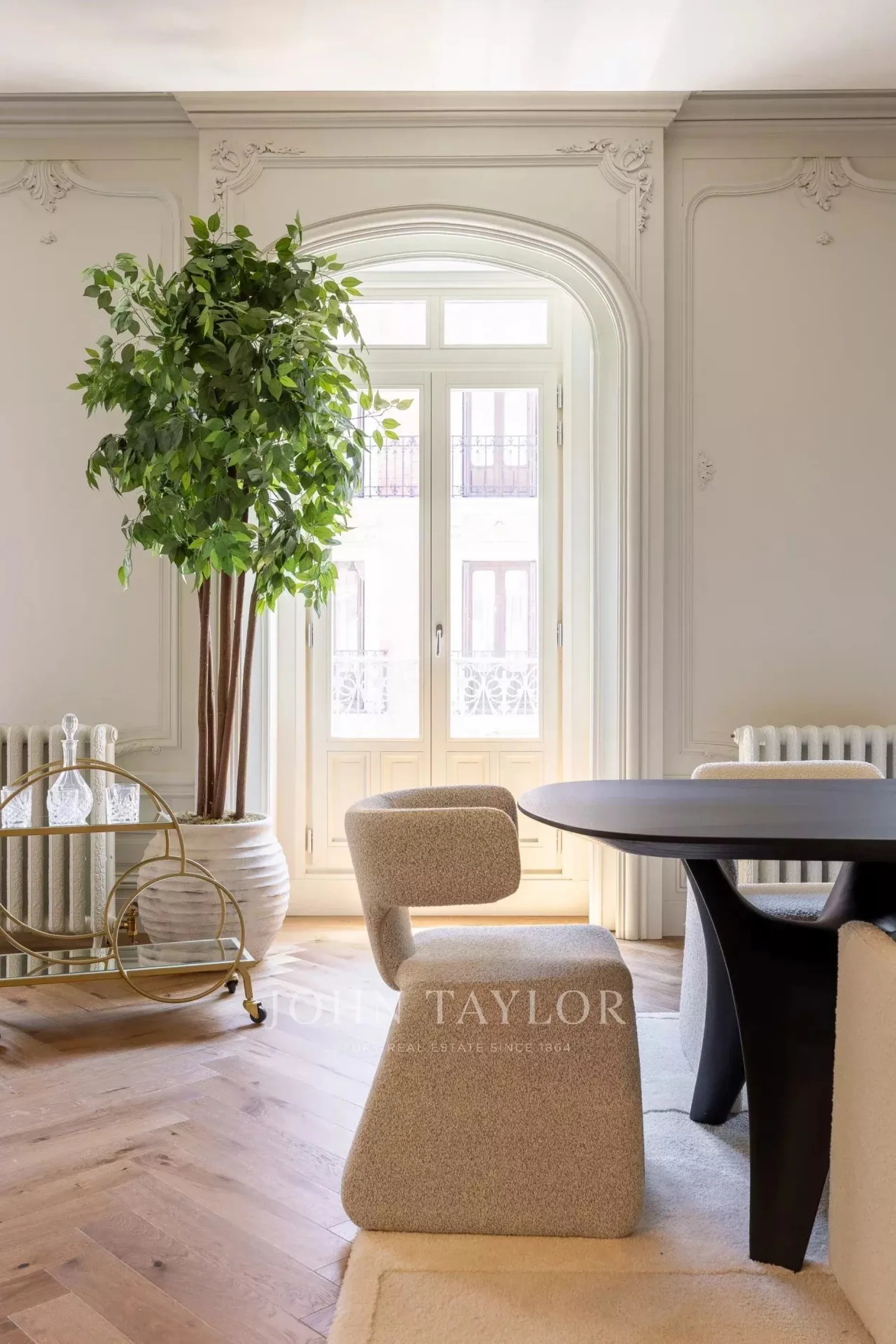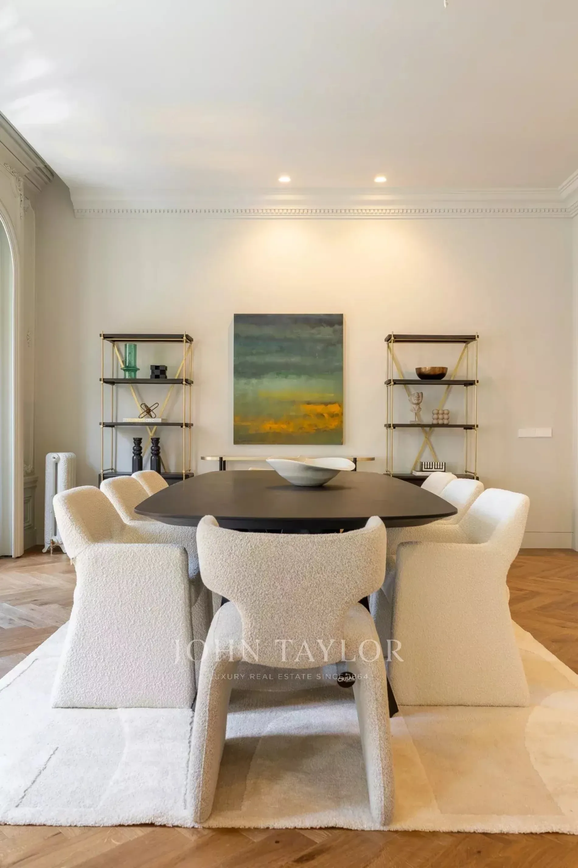 John Taylor exclusively presents this unique property, located on the second floor of a stately building built in 1900, excellently preserved. The property has 11 balconies overlooking the street, two of them are viewpoints typical of the period.