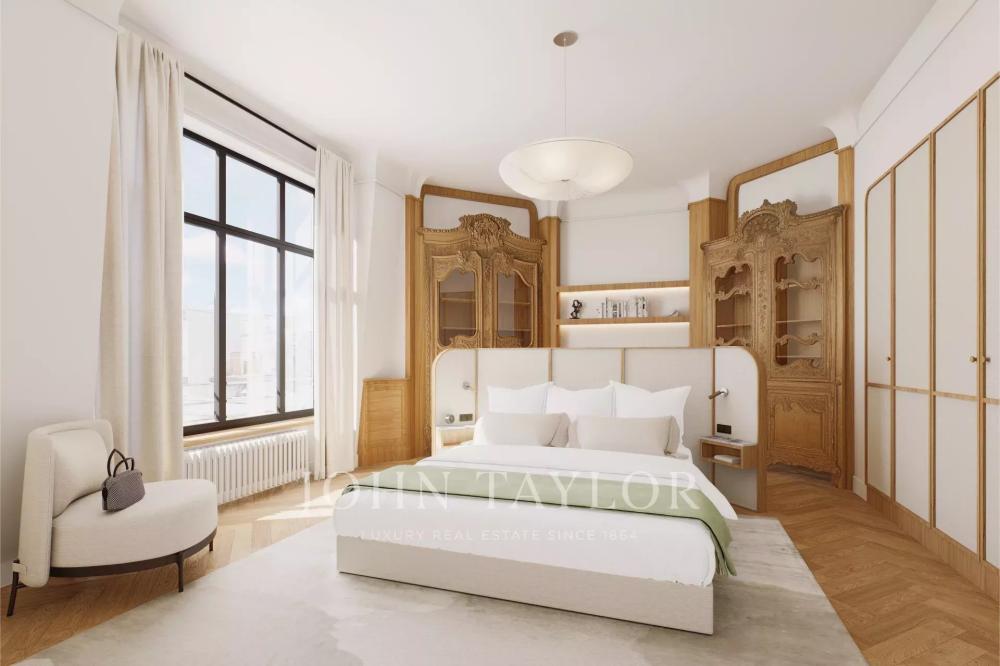 Bright, dual-aspect, and offering generous volumes, the apartment is laid out as follows:
