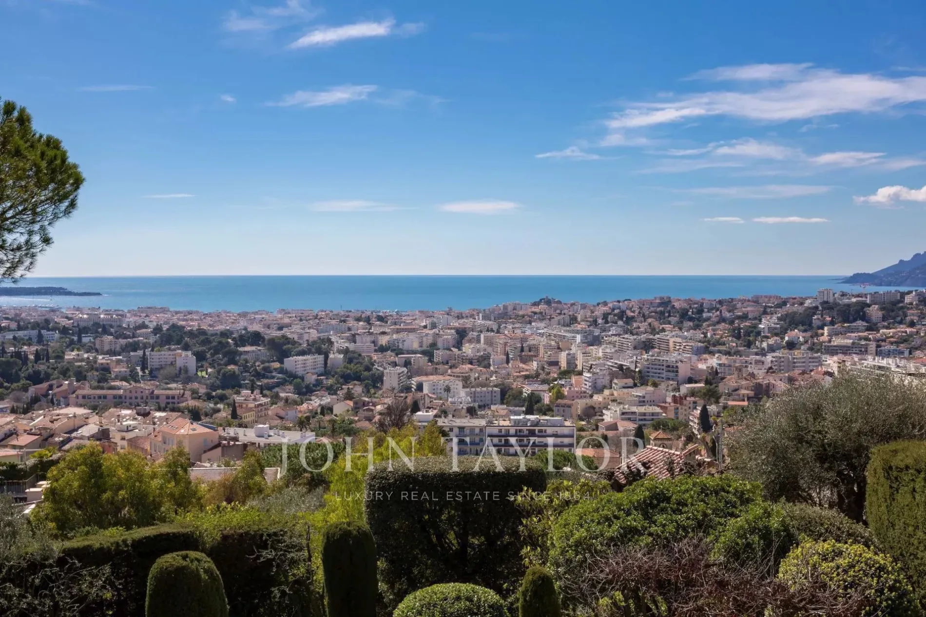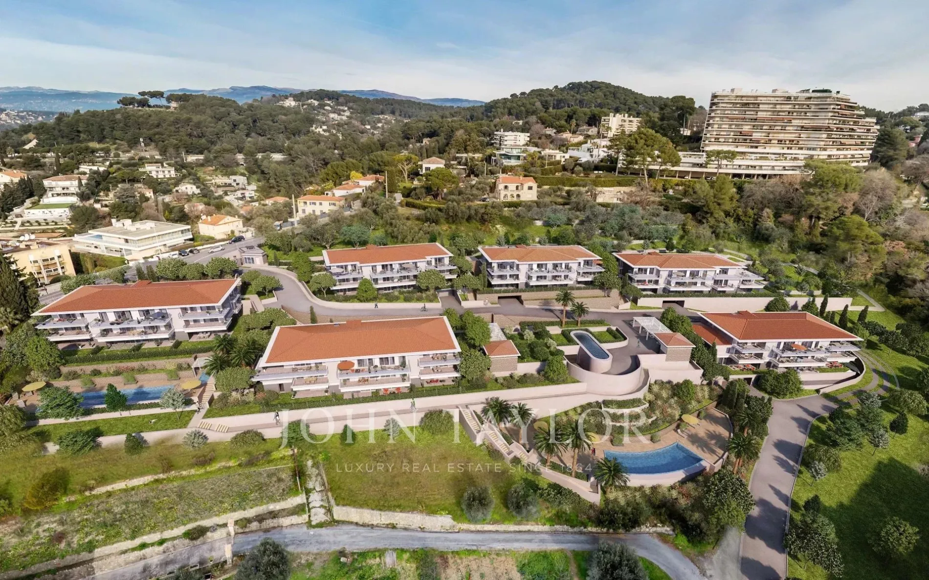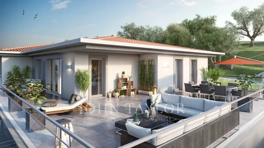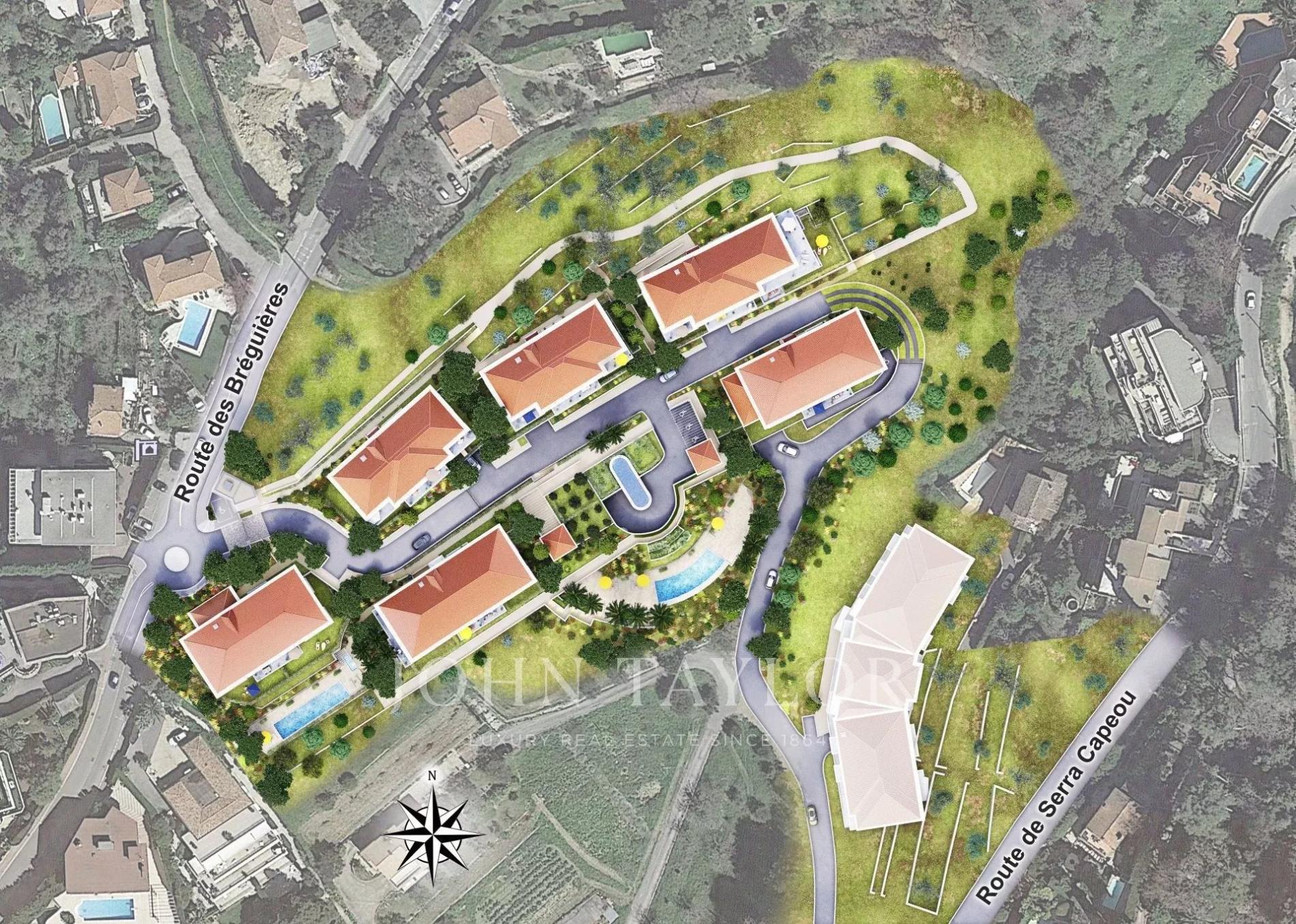 Ideally located on a real belvedere with panoramic views over the bay of Cannes, the Lerins islands and the Esterel mountains, in the heart of lush vegetation with an authentic preserved olive grove, will be erected a very high standing and exclusive gated estate.