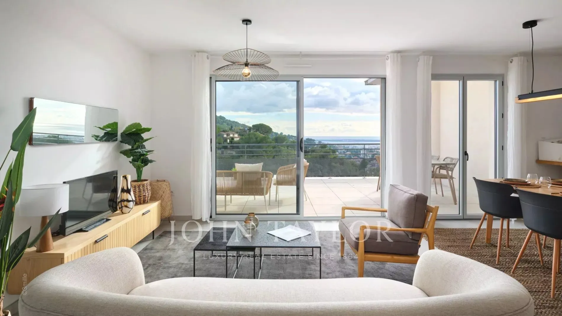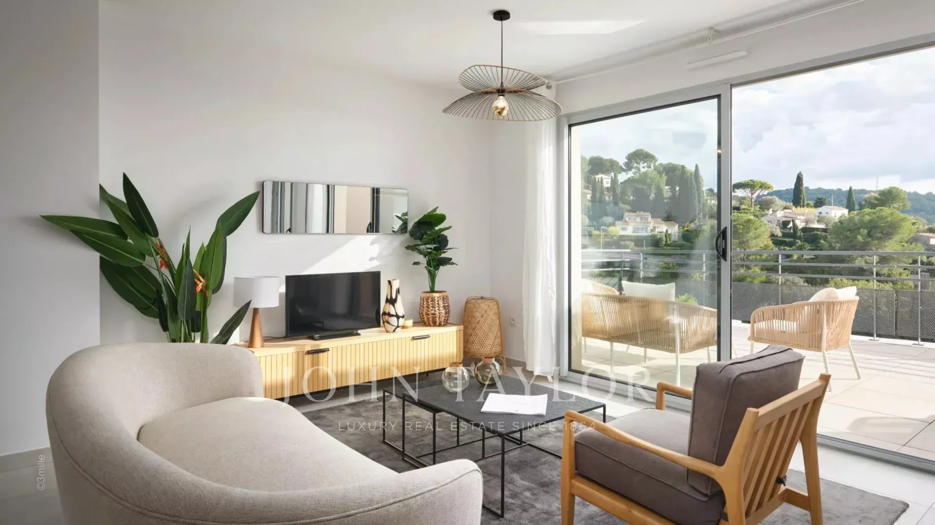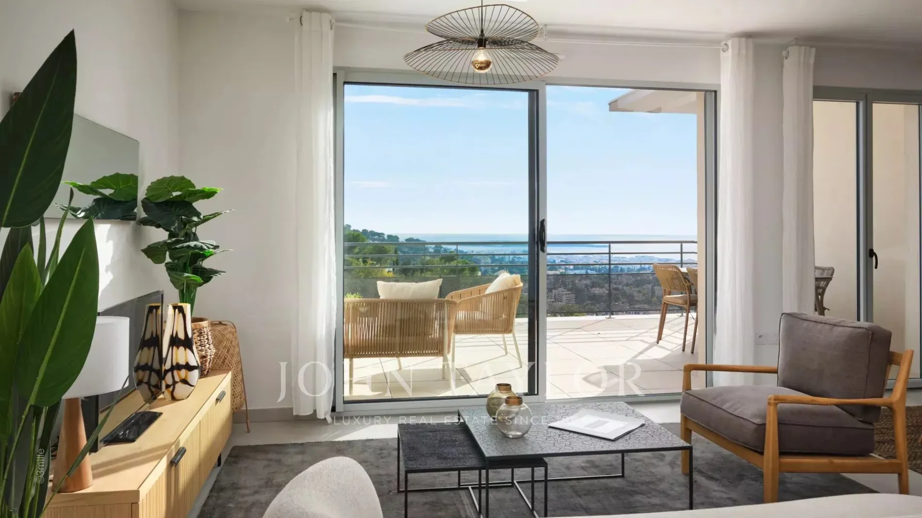 Ideally located on a real belvedere with panoramic views over the bay of Cannes, the Lerins islands and the Esterel mountains, in the heart of lush vegetation with an authentic preserved olive grove, will be erected a very high standing and exclusive gated estate.