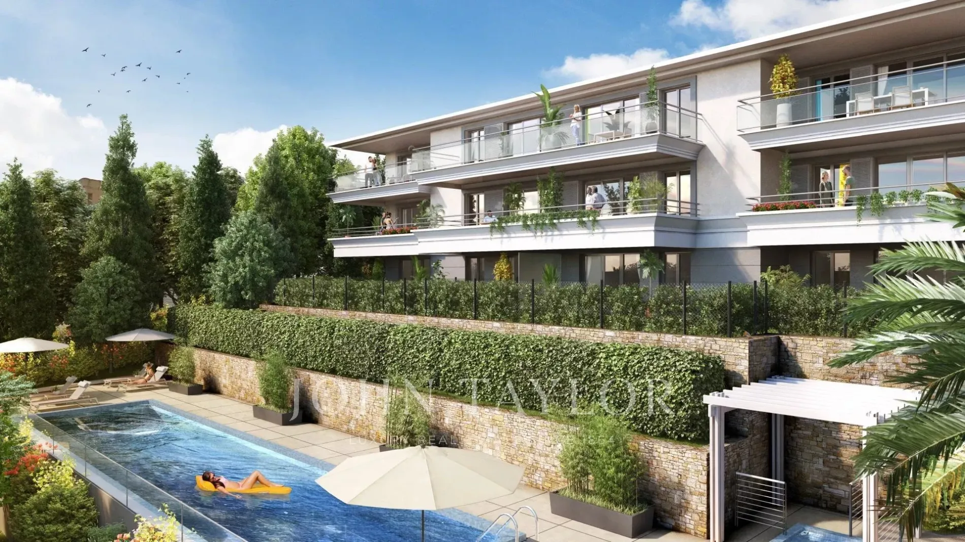 Composed of contemporary buildings spread over two levels only, this prestigious residence will be completed with two superb swimming pools.