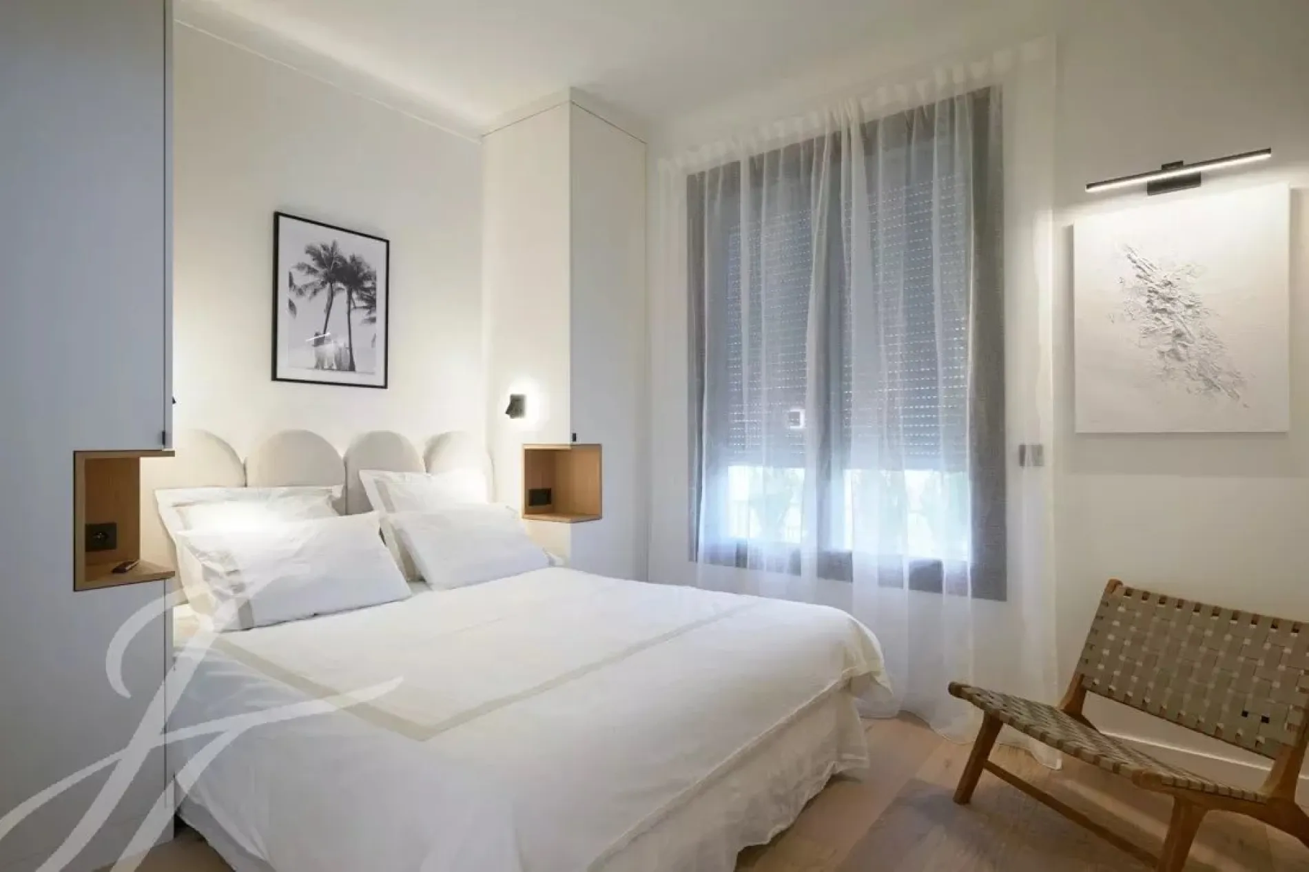The residence, secured by a janitor, is slightly set back from the Croisette and boasts a magnificent garden.