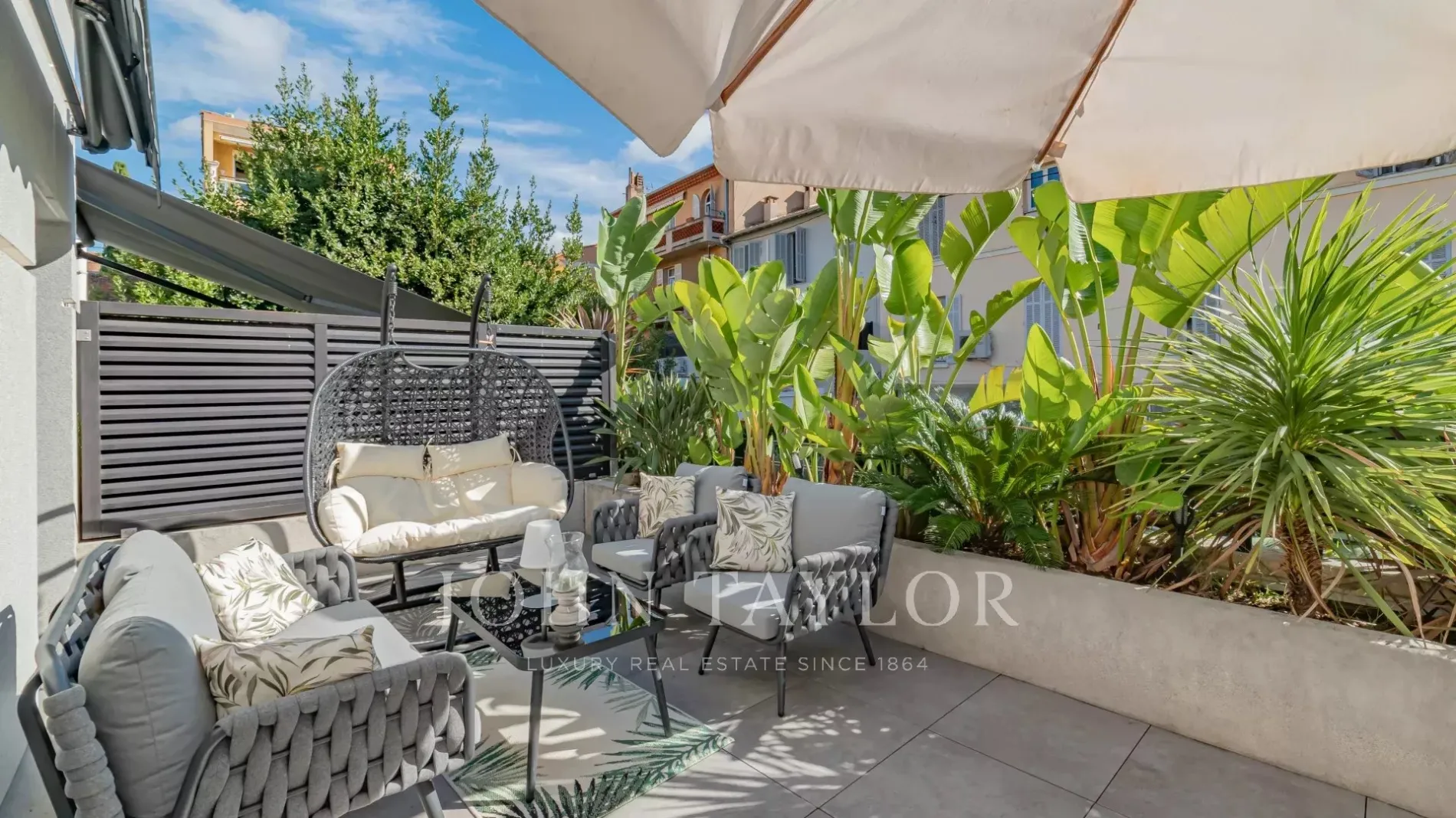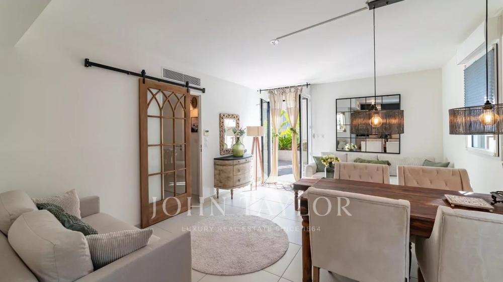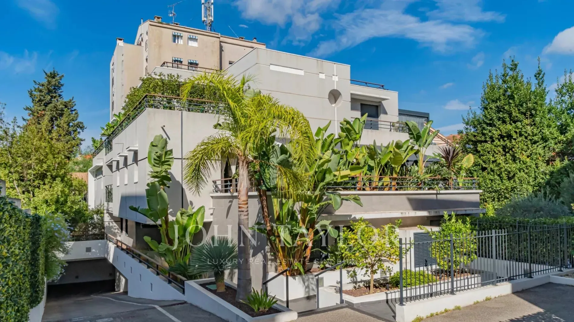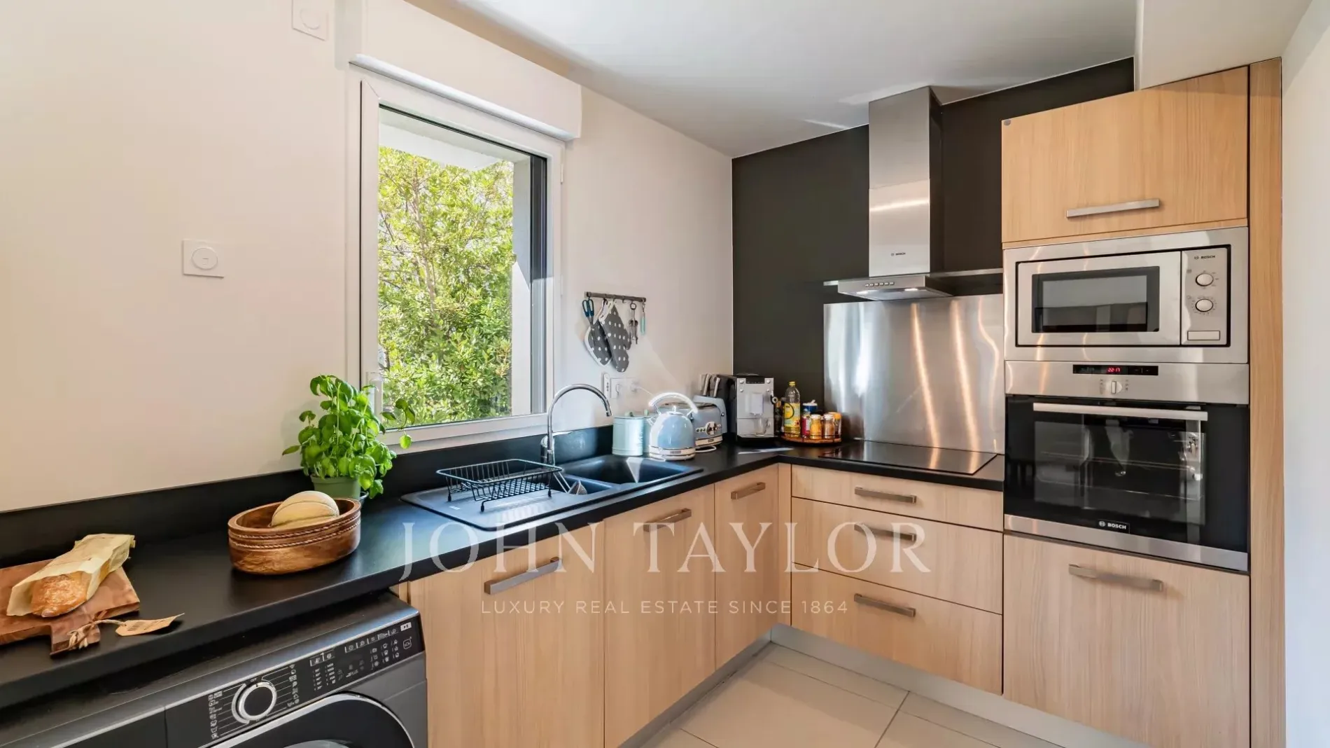 A vast 26 m² sunny terrace, surrounded by greenery, offers a pleasant outdoor space.