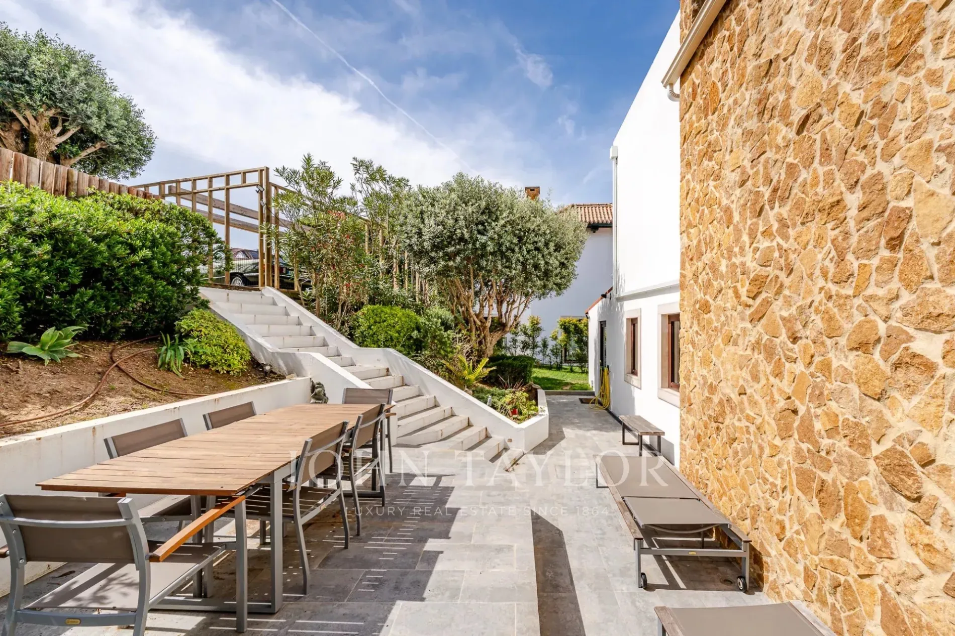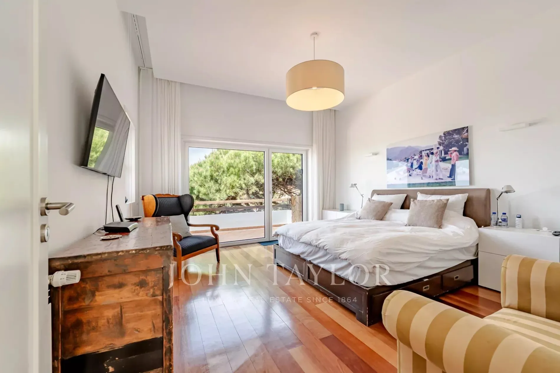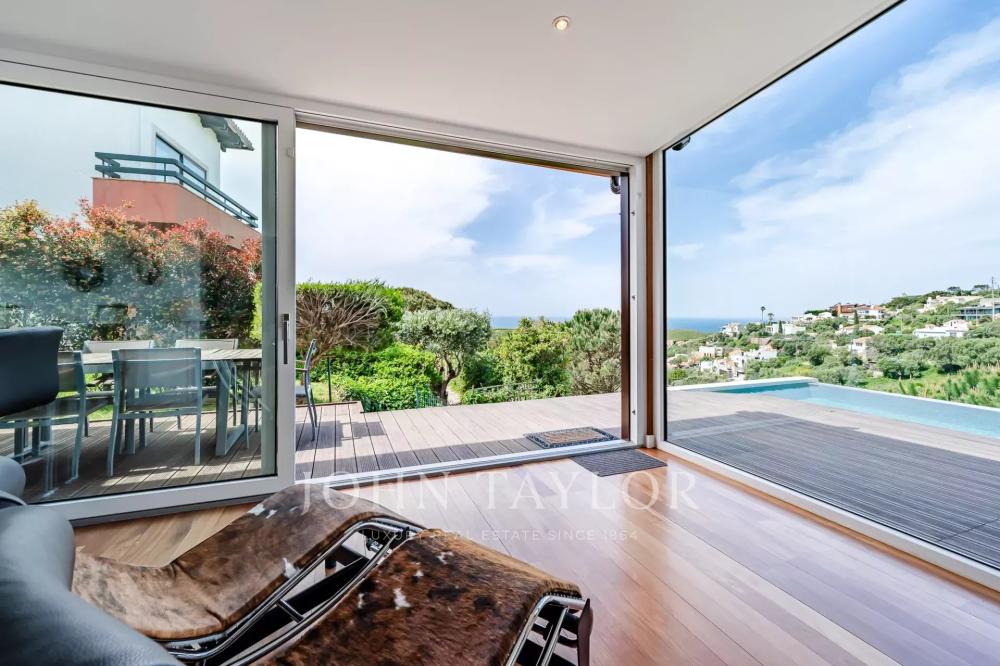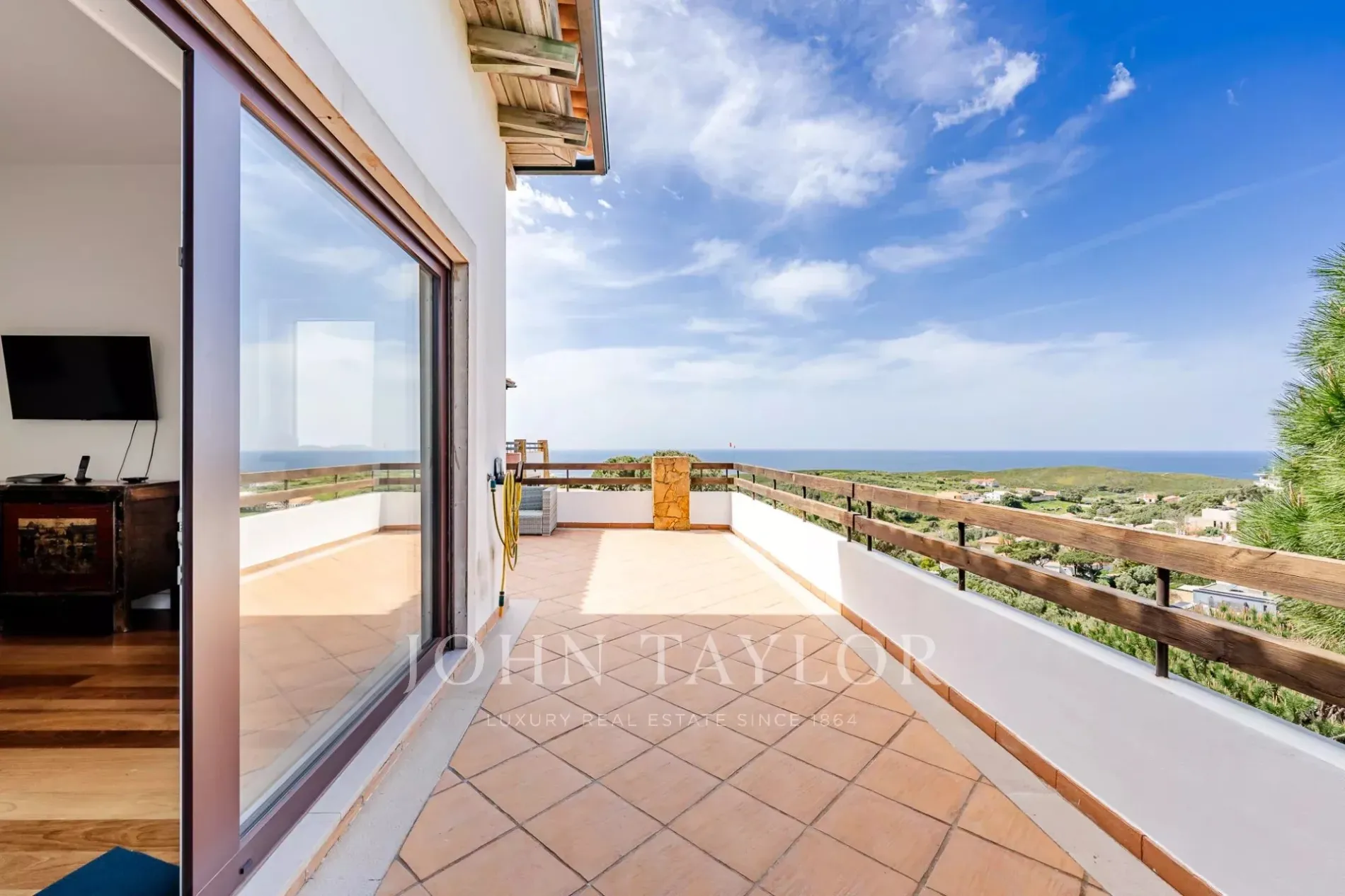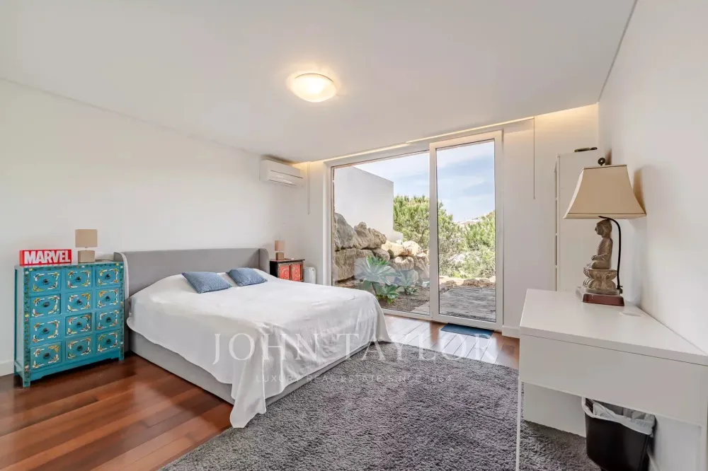 Located in a secure private condominium near Guincho Bay, this villa offers uninterrupted views of the Atlantic Ocean from multiple rooms and outdoor spaces. It stands out for its elevated position and open outlook, with the sea visible from the living areas, terrace, and private pool.