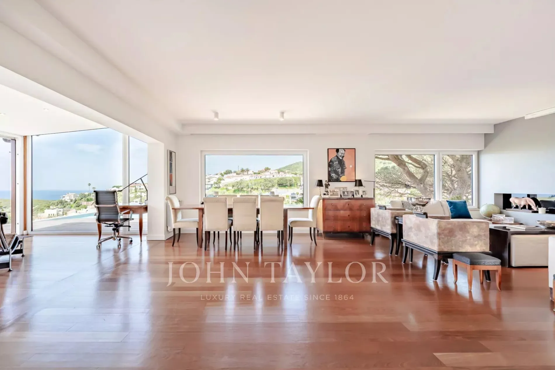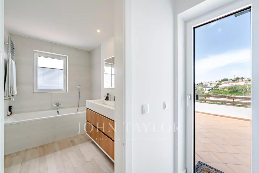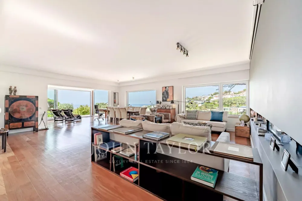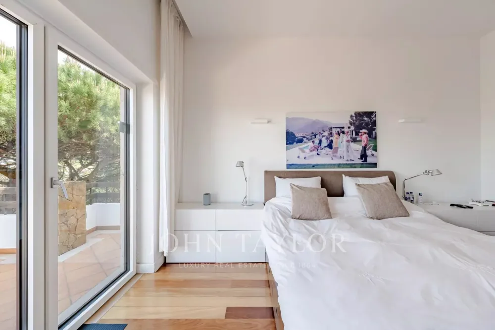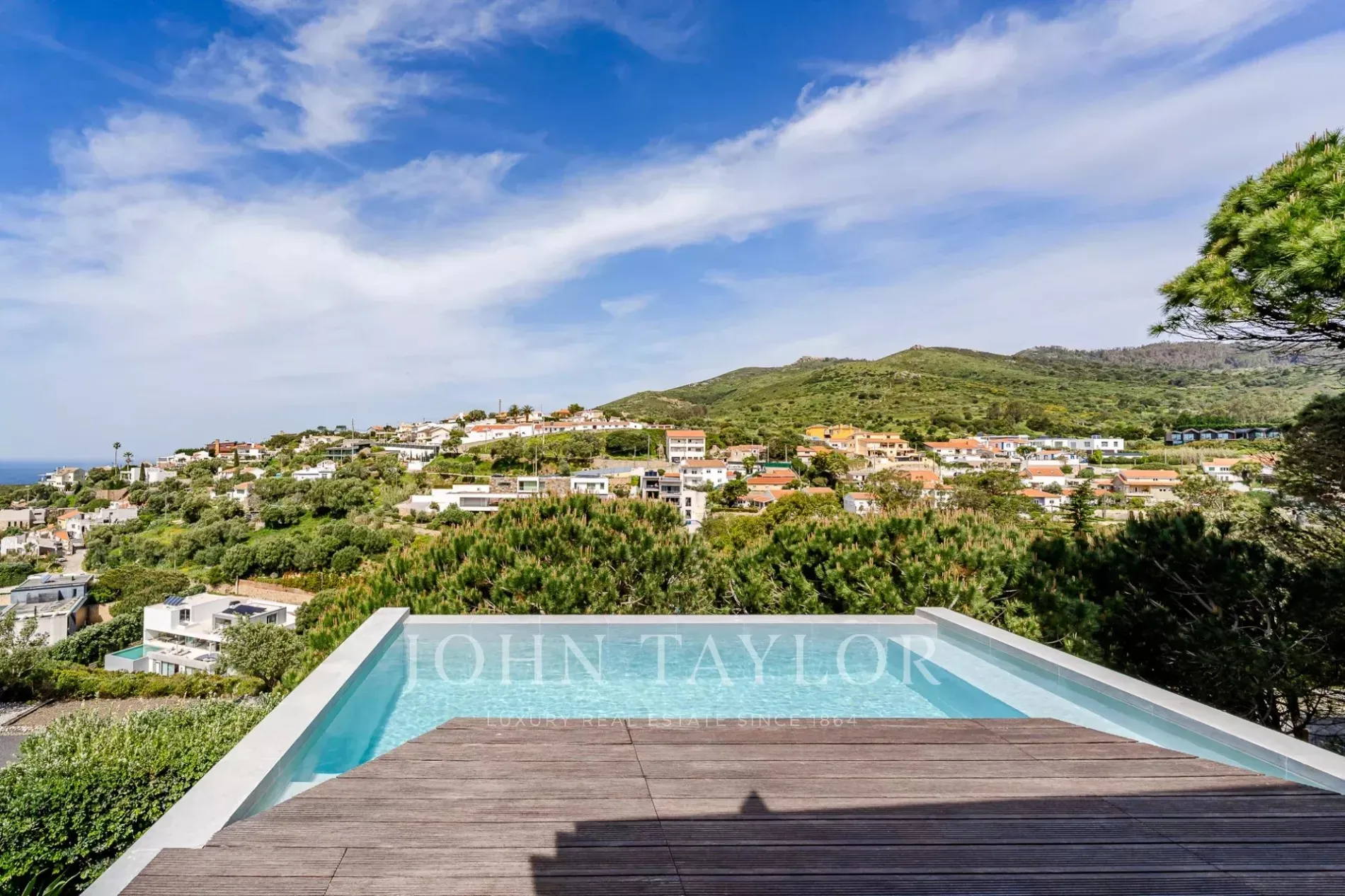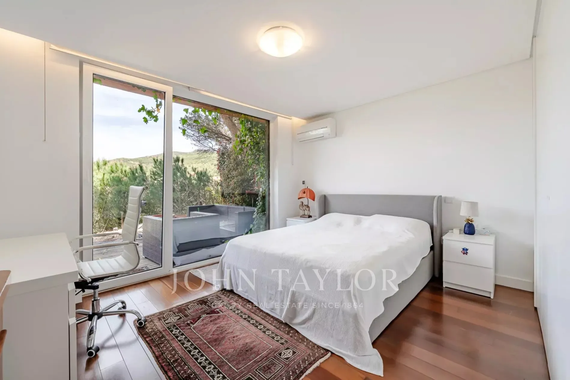 Located in a secure private condominium near Guincho Bay, this villa offers uninterrupted views of the Atlantic Ocean from multiple rooms and outdoor spaces. It stands out for its elevated position and open outlook, with the sea visible from the living areas, terrace, and private pool.