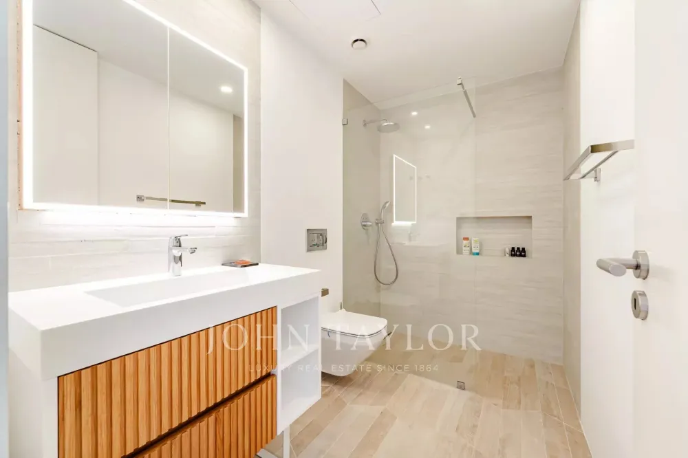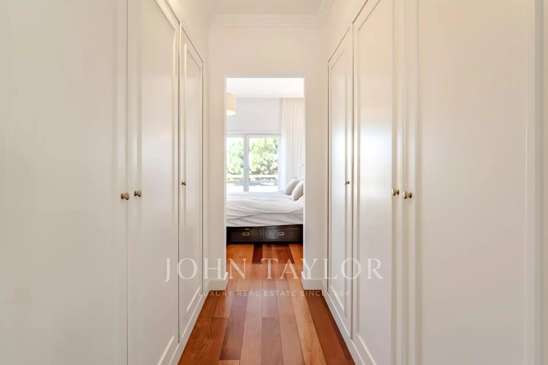 Residents benefit from 24-hour security, landscaped gardens, shared swimming pools, and tennis courts. The property also includes private parking and high-quality finishes. The beach is just minutes away, and Lisbon can be reached in just over half an hour.