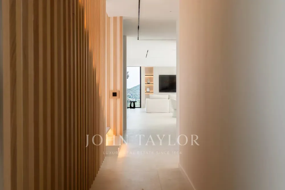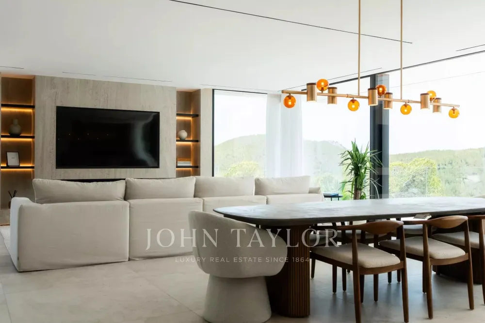 With a total of 7 bedrooms and 7 bathrooms, every corner of this villa is designed to provide an atmosphere of opulence and well-being. The spacious living and dining room is the heart of the property, highlighting a generous bay window that unfolds towards the infinity pool, offering breathtaking views of the sea and the serene countryside surrounding the property.