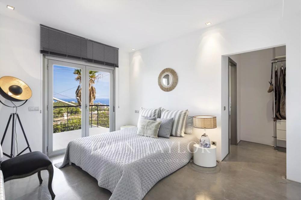 Recently renovated, the 346 m² villa combines elegant interiors with generous outdoor living areas designed to make the most of Mallorca’s light and climate. The main floor features a bright living room with fireplace, a master suite with dressing area and sea views, and a fully equipped kitchen — all opening onto terraces that invite you to dine, read, or simply take in the horizon.