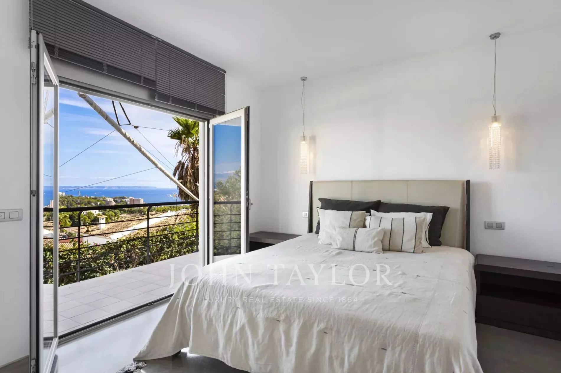 Set in the upper part of Génova, this villa offers something truly rare: breathtaking panoramic views over Palma Bay, Bellver Castle, Cabrera Island, and the open sea. From sunrise to moonlight, the scenery constantly transforms — a serene Mediterranean spectacle that you can enjoy from every terrace.