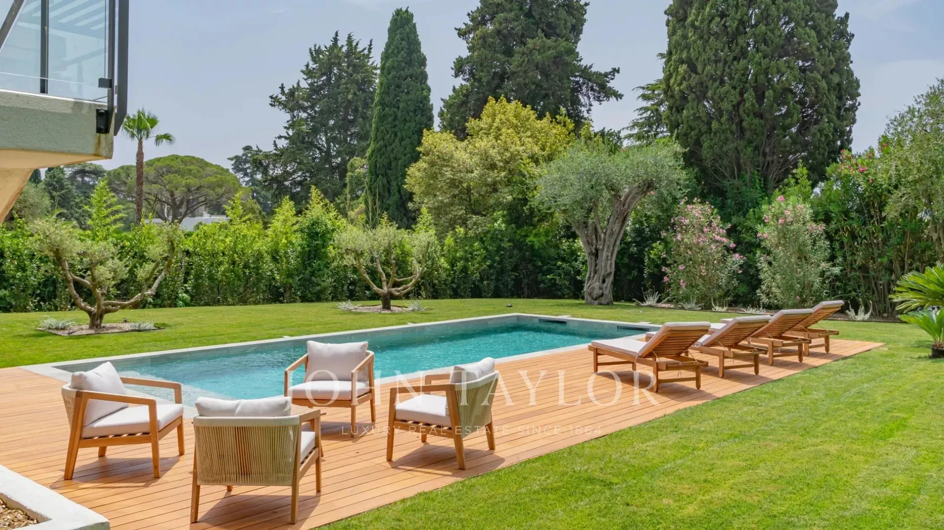 Landscaped garden of approx. 1,193 m² with 4 x 10 m swimming pool, garage and several outdoor parking spaces complete this rare property for sale.